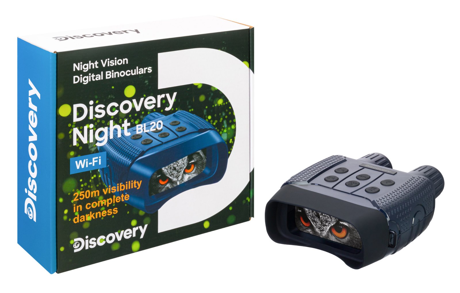 Binokulární dalekohled s nočním viděním Discovery Night BL20 má vestavěný Wi-Fi modul, který umožňuje dálkové ovládání zařízení prostřednictvím smartphonu nebo tabletu. Díky novému zesilovači obrazu zařízení představuje kombinací binokulárního dalekohledu s nočním viděním a klasického binokulárního dalekohledu používaného během dne. Discovery Night BL20 je skvělou volbou pro dlouhé túry, noční lov, ochranu území, orientační běh a mnoha dalších aktivit.