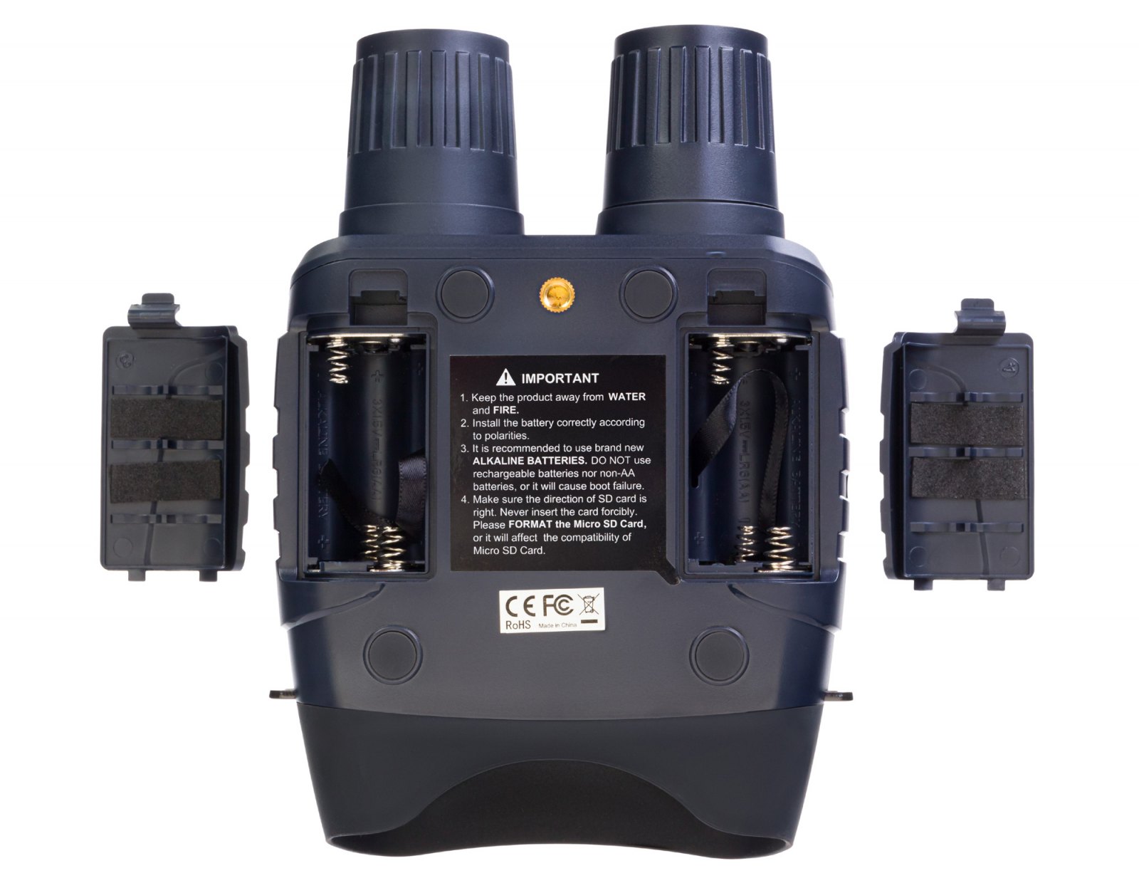 Binokulární dalekohled zajišťuje pevný úchop;pro maximální pohodlí jsou ovládací tlačítka umístěna přímo pod konečky vašich prstů, což je důležité zejména pro noční pozorování. Tělo je odolné proti prachu, nečistotám a vodě. Standardní sada baterií je nejlepší alternativou k baterii, která se nabíjí ze zásuvky: v případě náhlého vybití ji můžete v terénu snadno vyměnit. Baterie udržuje nabitý stav pod dobu 4 až 10 hodin (v závislosti na intenzitě infračerveného přísvitu). Součástí sady je malý stativ, který vám umožní postavit binokulární dalekohled na libovolné místo pro pohodlné pozorování.