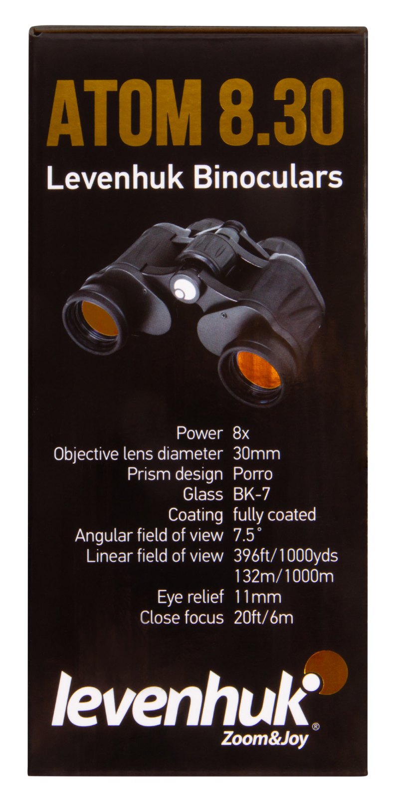 Binokulární dalekohled Levenhuk Atom 8x30 je spolehlivý optický přístroj pro venkovní pozorování. Tento dalekohled si oblíbí vyznavači pěší turistiky, přírodovědci a všichni, kdo rádi chodí na procházky. Tento dalekohled přichází v odlehčeném plášti s bezpečným úchopem;navíc v batohu nezabírají mnoho místa. Jeho optika umožňuje 8x zvětšení s ostrým a jasným obrazem a dobrou viditelností.