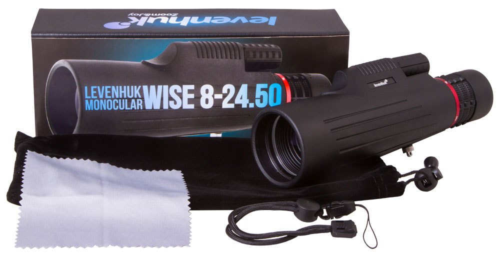 Levenhuk Wise 8–24x50 je monokulární dalekohled s vysokou světelností s proměnným zvětšením v rozsahu od 8x do 24x. Tento výkonný a spolehlivý optický přístroj doporučujeme zakoupit všem cestovatelům, turistům a pozorovatelům přírody a zvěře v ní žijící. Dokážete s ním též podrobně sledovat architektonické prvky v historických centrech měst. Proměnné zvětšení přispívá k univerzálnosti použití tohoto optického přístroje – velké objekty lze snadno pozorovat a zaostřovat na sledované objekty při nízkém zvětšení. Navíc dokážete podrobně sledovat malý cíl při maximálním zvětšení.