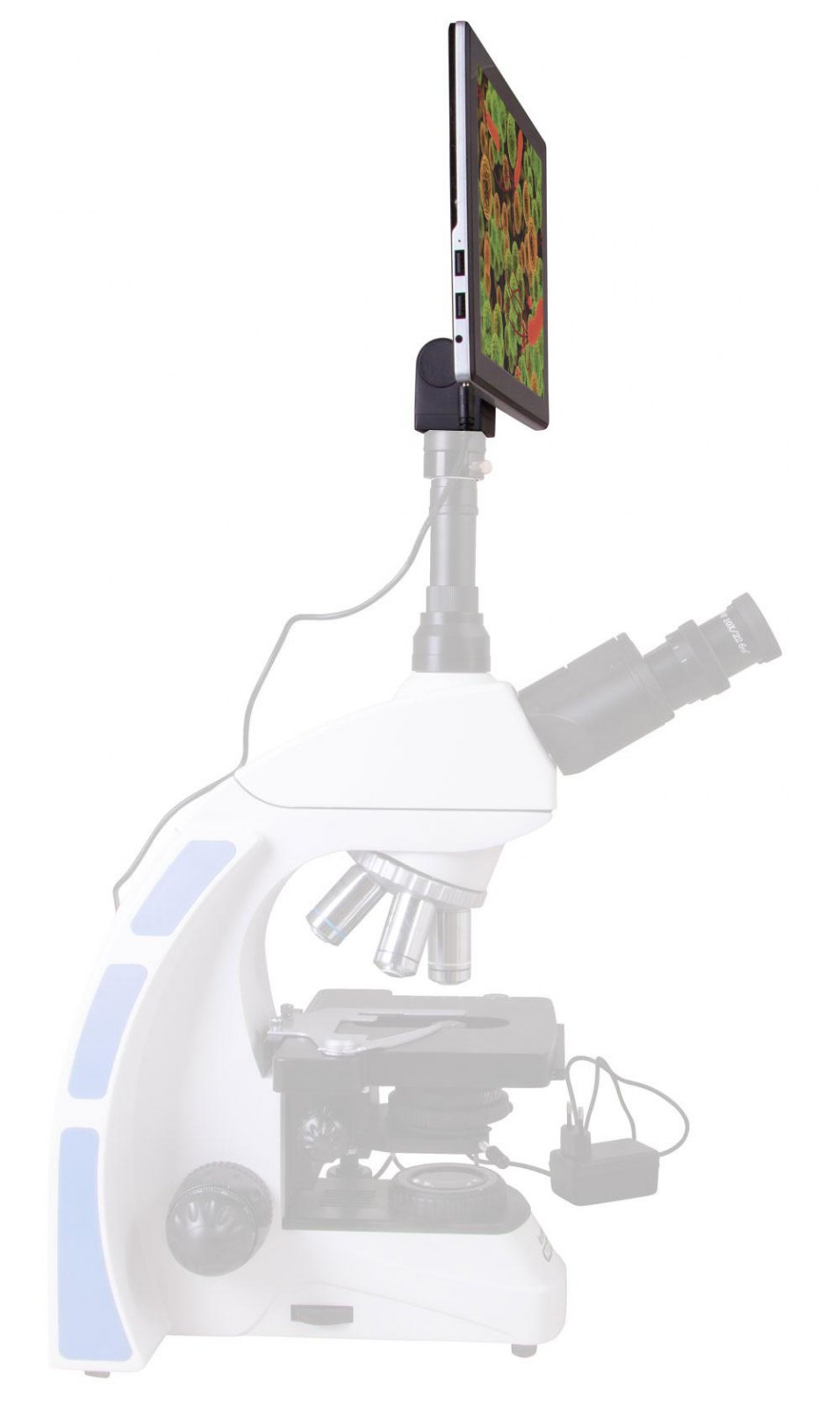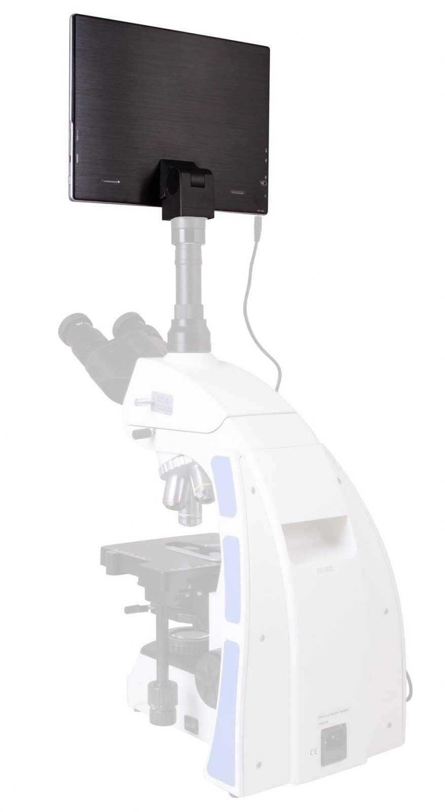 Fotoaparát disponuje standardním průměrem tubusu a lze jej instalovat na mikroskopy s okuláry o průměru 23,2 mm. Nedoporučujeme takto používat fotoaparát s monokulárními a binokulárními mikroskopy, jeho obrazovka je poměrně těžká a vzhledem k nakloněné poloze by mohlo dojít k jeho převrácení. Fotoaparát proto používejte pouze s trinokulárními modely, které mají samostatný vertikální tubus. K uchycení kamery k tubusu okuláru je třeba montážní adapter (k zakoupení samostatně).