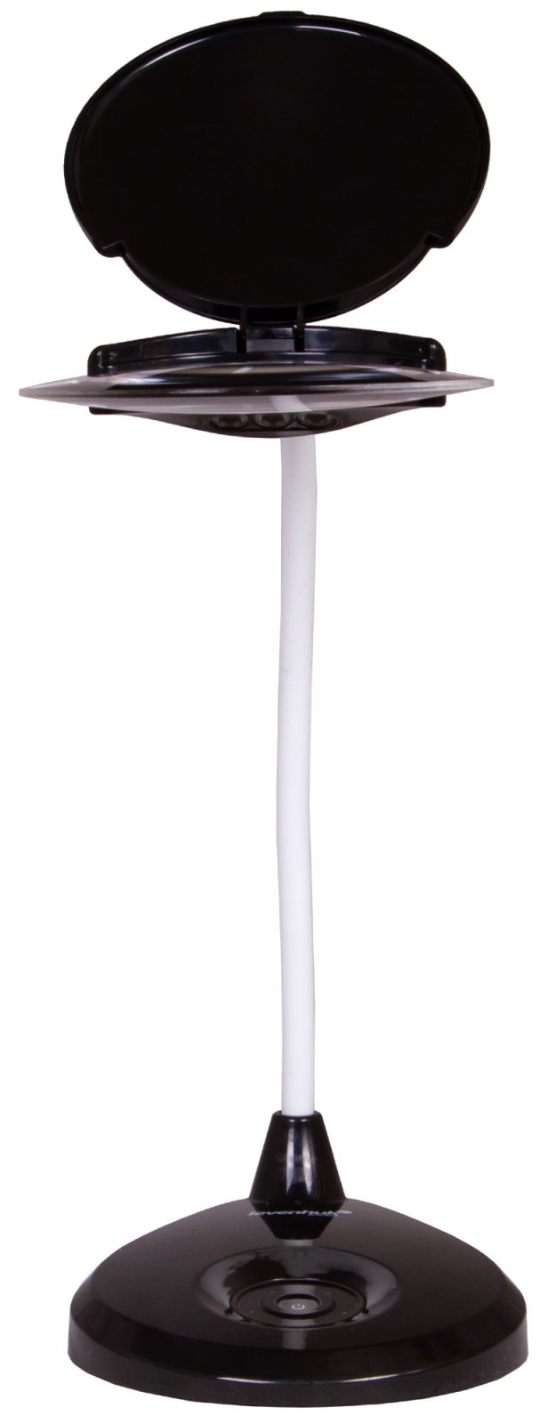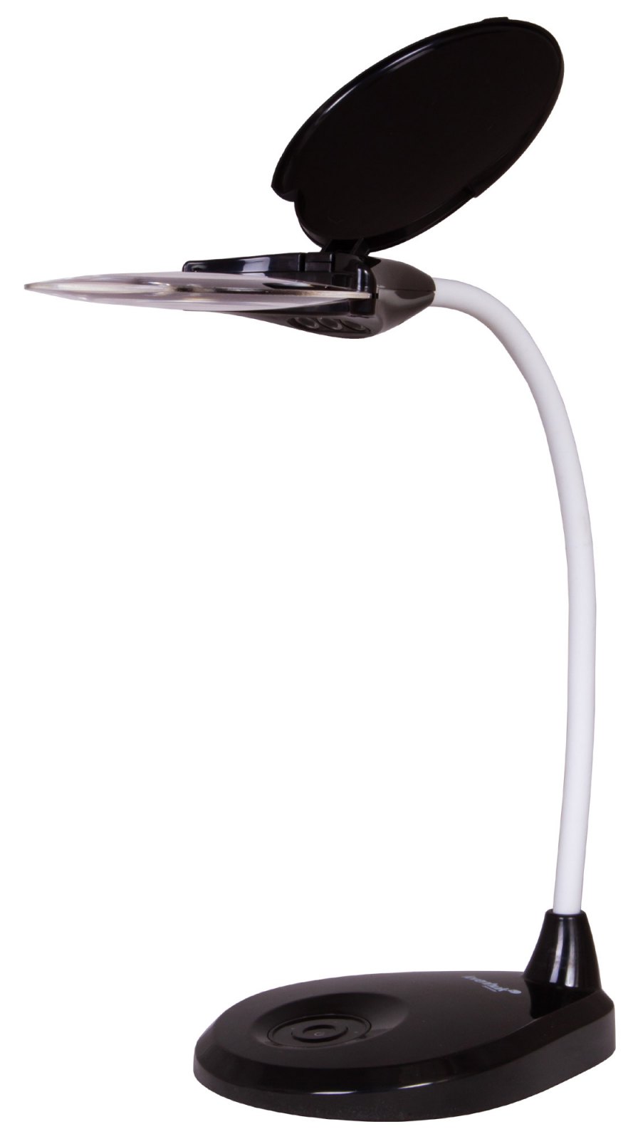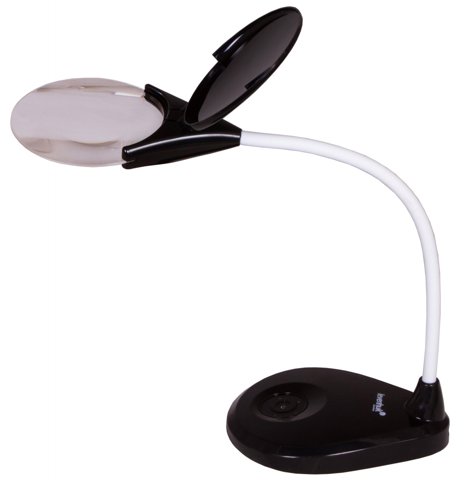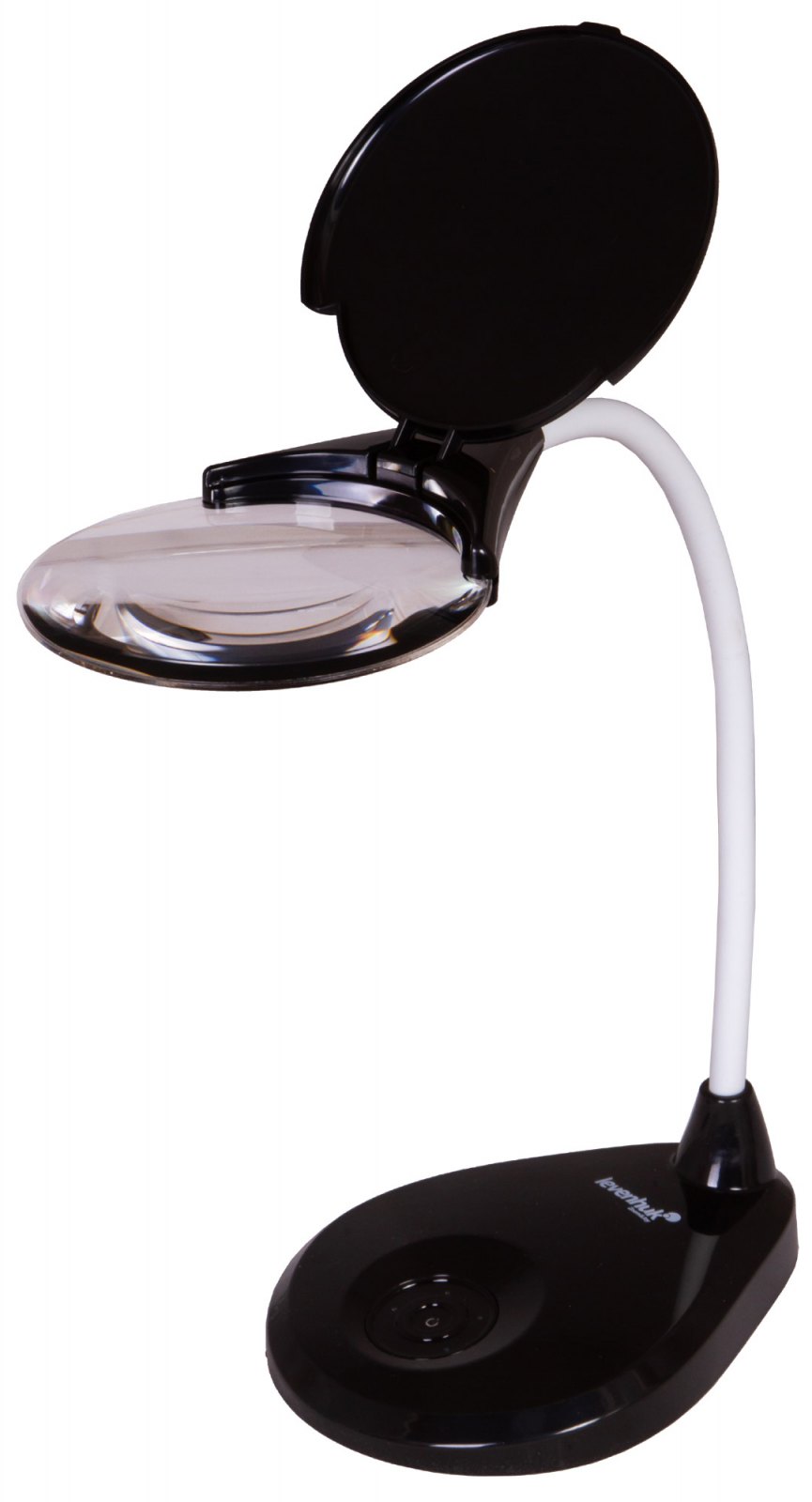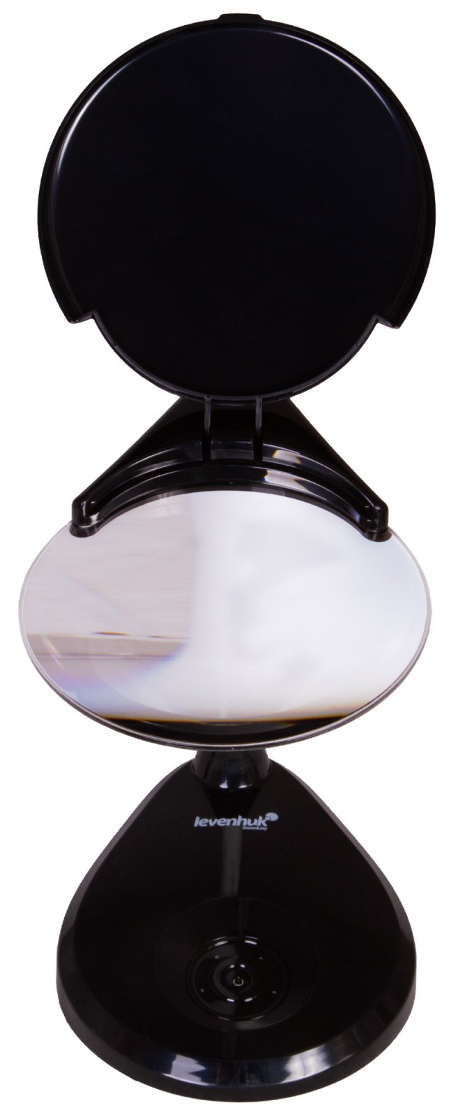 Když lupu nepoužíváte, můžete odklápěcí ochranný kryt čočky proti prachu zavřít: lupa tak zůstane chráněna před prachem a nečistotami. Základna lupy je zatížená, aby se zabránilo převrácení.