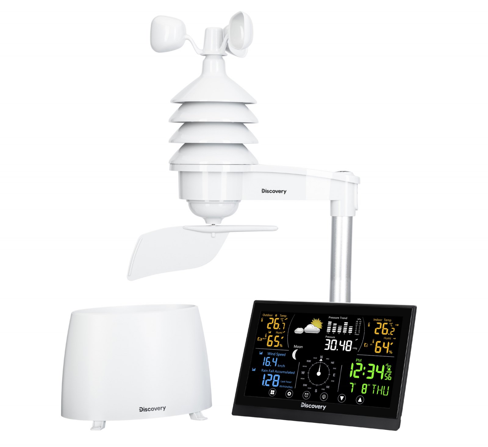 Profesionální meteostanice Discovery Report WA60 není jen klimatické udělátko, ale také plnohodnotné meteorologické centrum ve vaší domácnosti. Poskytuje přístup k obrovskému množství naměřených hodnot, které nejsou načítány z webových stránek, ale jsou měřeny vzdálenými senzory, které jsou zahrnuty v sadě. Hlavní funkce: měření vnitřní a venkovní teploty a vlhkosti, zjišťování úrovní tlaku a srážek, směru větru a jeho rychlosti. Podle shromážděných dat je meteostanice schopna vytvořit předpověď počasí na několik dalších dní. K dispozici jsou též hodiny, kalendář a budík.