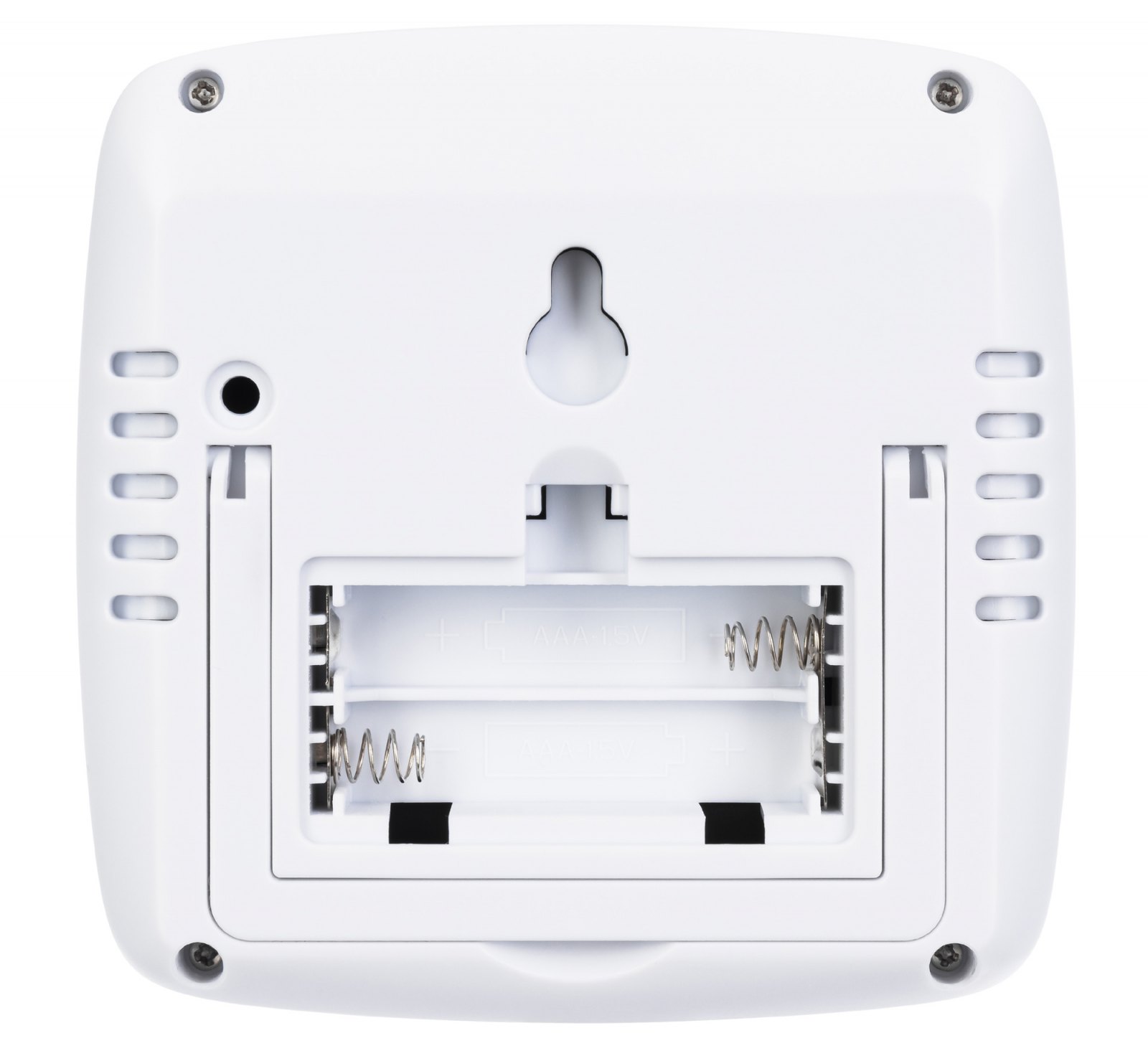 Přístroj je napájen pomocí standardních baterií. Lze jej připevnit na stěnu nebo umístit na stolní stojan.