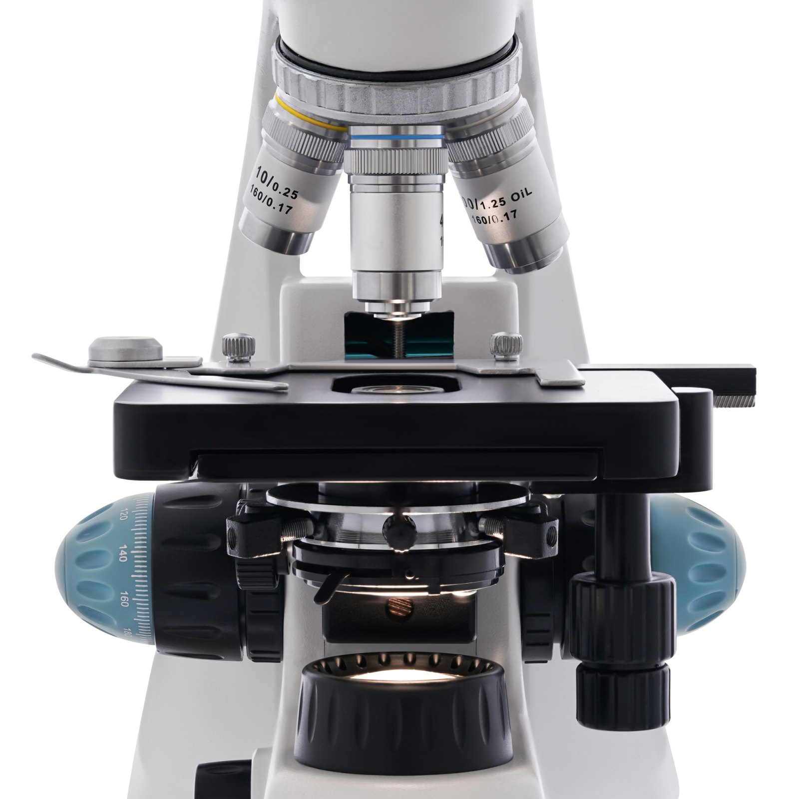 Levenhuk 500T je trinokulární laboratorní mikroskop s rozsahem zvětšení od 40x do 1000x. Je vybaven achromatickou optikou se širokoúhlými okuláry, která poskytuje jasný a ostrý obraz. Vzhledem k tomu, že se jako osvětlení používá halogenové světlo, vypadá obraz skutečně věrohodně a všechny barvy a detaily vzorků vypadají ostře a jasně. Mikroskop je opravdovým pokladem při práci ve výzkumné laboratoři, zdravotnickém zařízení nebo veterinární ordinaci.