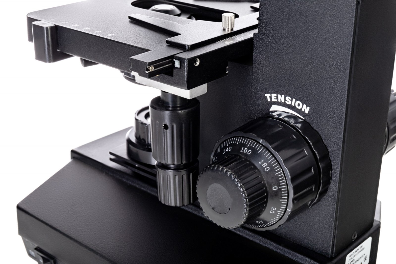 Každý profesionální výzkumník, který denně tráví hodiny pozorováním různých předmětů pod mikroskopem, jistě ocení binokulární uspořádání okulárů, které snižuje namáhání očí. Trinokulární hlavici lze otáčet o 360 stupňů pro provádění výzkumu nebo studií ve skupinách.