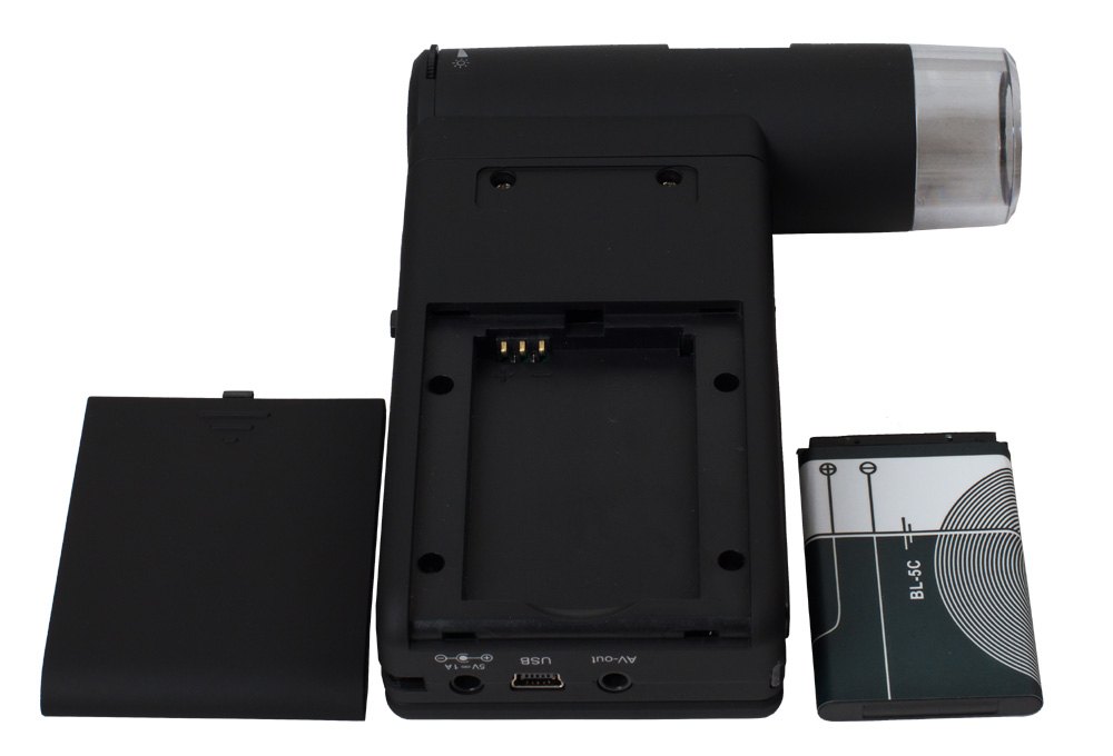 Digitální mikroskop Levenhuk DTX 500 Mobi je napájen baterií Li-ion, která je součástí soupravy a umožňuje až 4 hodiny práce bez připojení ke zdroji e lektrické energie.