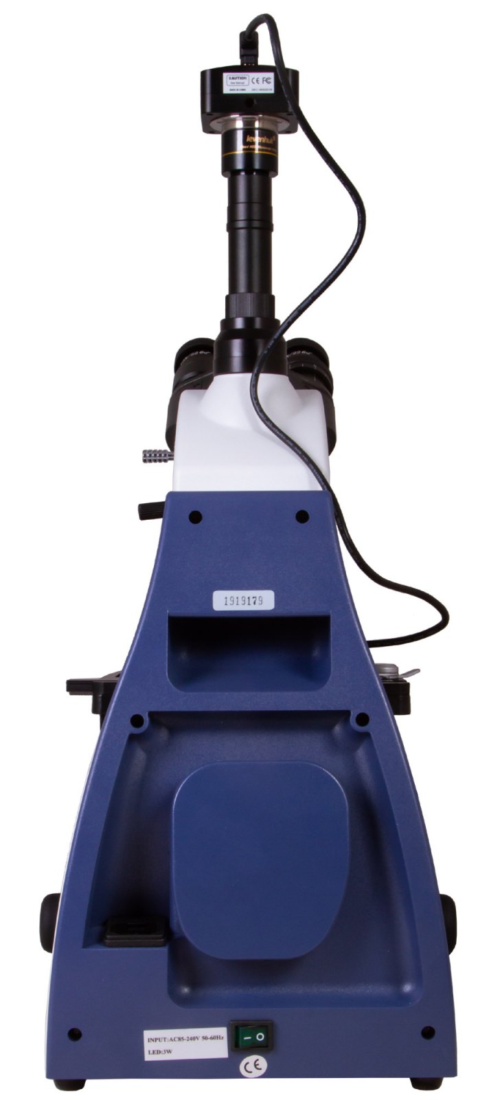 Mikroskop je vybaven trinokulární hlavou: vertikální tubus slouží k upevnění digitálního fotoaparátu (je součástí dodávky) a binokulární hlava umožňuje pozorování oběma očima. Vizuální část má úhel sklonu 30°, hlava je otočná o 360°. Mikroskop je vhodný pro dlouhá pozorování při provádění výzkumu ve skupině. Širokoúhlé okuláry poskytují dobrý obraz při 10x zvětšení. Okuláry jsou vybaveny dioptrickou korekcí, která pomáhá přizpůsobit optiku individuálně pro zrak každého zákazníka. Revolverový nosič objektivů má pět objektivů, z nichž tři s výkonnějším zvětšením mají pružinové rámy. Olejová imerze může být použita během pozorování přes objektiv se 100x zvětšením. Všechny optické prvky jsou chráněny protiplísňovým povlakem.