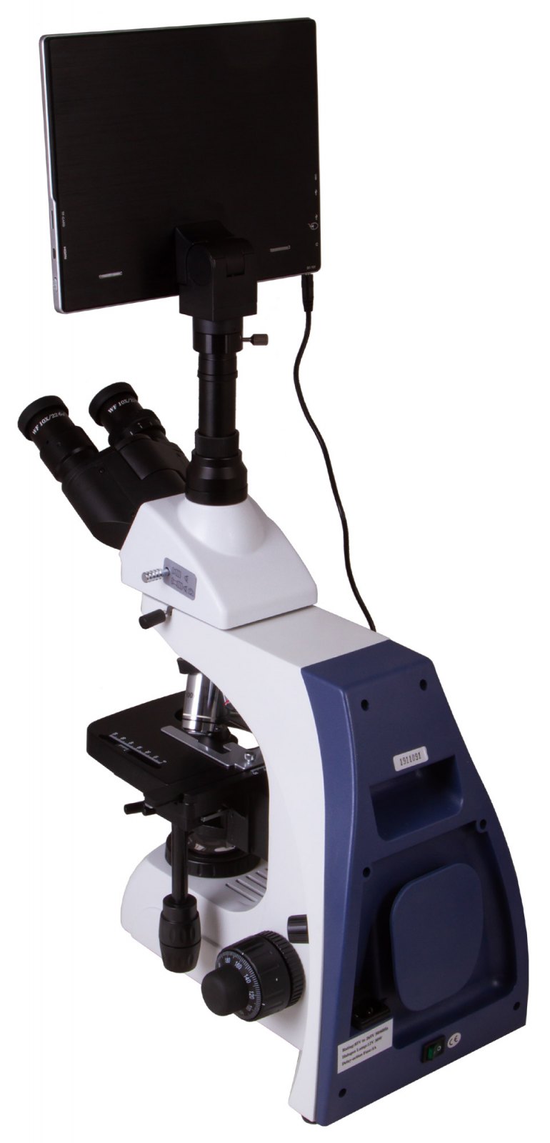 Trinokulární hlava se skládá z binokulární vizuální jednotky a vertikálního tubusu pro instalaci digitálního fotoaparátu. Sada obsahuje dva 10x širokoúhlé okuláry s dioptrickým nastavením, které se používají pro vizuální pozorování, a 5 MP digitální fotoaparát. Není třeba jej připojovat k počítači: v objektivu se obraz zobrazí na vestavěné LCD obrazovce. Tato LCD obrazovka slouží k nastavení všech funkcí fotoaparátu (volba režimu záznamu, úložiště atd.) a zpracování obrazu. Digitální fotoaparát umožňuje snímání videa a pořizování fotografií ve vysokém rozlišení. Fotoaparát také umožňuje připojení dalšího zařízení (klávesnice, myši, sluchátek, externího monitoru nebo televizoru), podporuje paměťové karty a další datová úložiště.