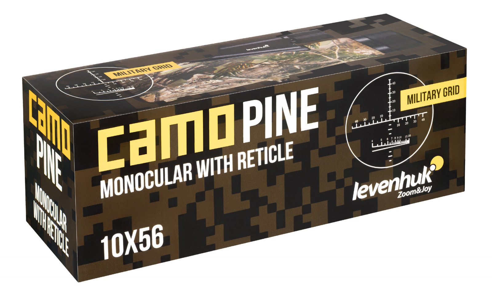 Monokulární dalekohled se zaměřovačem Levenhuk Camo 10x56 je výtečná volba pro lov a rybaření, sportovní střelbu, turistiku a orientační běh. Tento monokulární dalekohled nabízí výtečný optický výkon, spolehlivé vodotěsné tělo a kompaktní velikost. Okulár přístroje má stupnici, takže můžete snadno vypočítat vzdálenost k cíli a jeho výšku a též úhly (vertikální a horizontální). Stupeň krytí IP67 a dusíková náplň umožňují efektivní použití monokulárního dalekohledu v blízkosti vody, za špatného počasí a během rychlých změn teploty.
