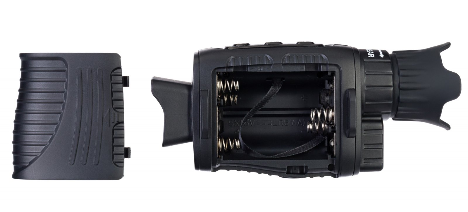 Monokulární dalekohled má konstrukci odolnou proti kapající vodě a závit 1/4". Design je ergonomický a uchopení monokulárního dalekohledu je velice pohodlné. Ovládání zařízení je uživatelsky přívětivé. Monokulární dalekohled pro noční vidění je napájen bateriemi AA (baterie nejsou součástí dodávky), protože v polních podmínkách je to nejvhodnější. Vybité baterie lze rychle vyměnit za nové, ale nabíjení baterie v terénu je velmi obtížné. Zařízení může na jedno nabití fungovat po dobu od 4 do 10 hodin, v závislosti na intenzitě podsvícení.