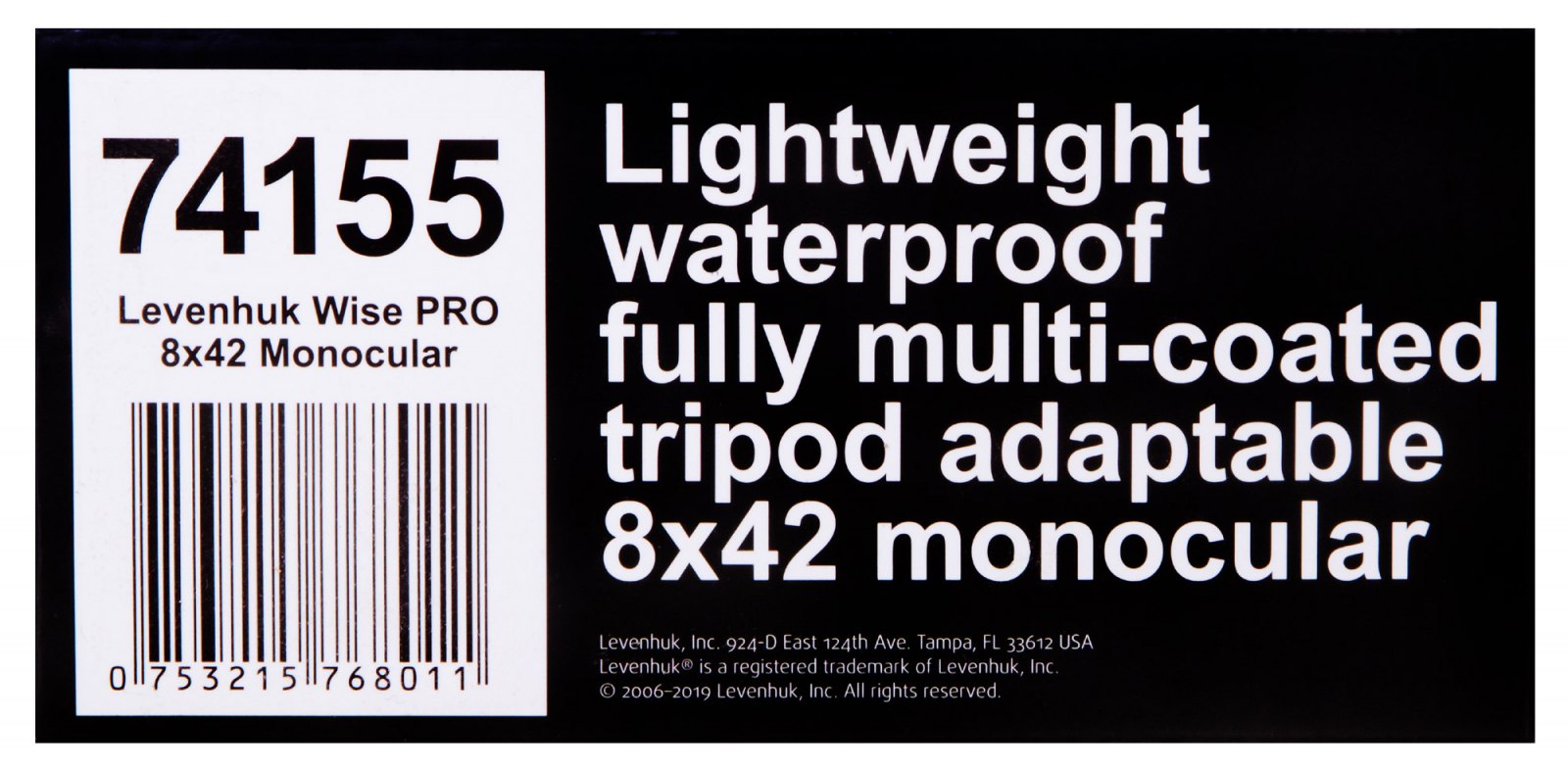 Monokulární dalekohled Levenhuk Wise PRO 8x42 je skvělou alternativou k profesionálním binokulárním dalekohledům. Je menší a lehčí, s vynikající kvalitou obrazu. Tento monokulární dalekohled je stejně vhodný pro pozorování i pro podrobné zkoumání velice vzdálených objektů. Skvělá kombinace velkého zvětšení a širokého zorného pole doplněná citlivou clonou pro pozorování i za zhoršených světelných podmínek.