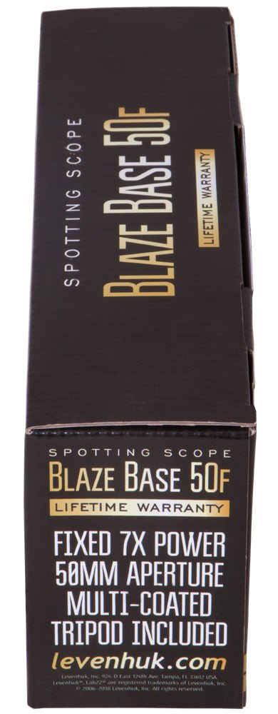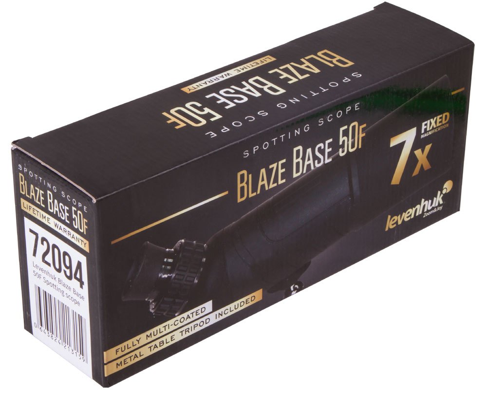 V optické konstrukci jsou použity skleněné čočky. Šikmý okulár zajišťuje pohodlné sledování objektů nacházejících se v nadhlavníkové oblasti. Plášť je vyroben z odolného nárazuvzdorného plastu, který zajišťuje ochranu přístroje před náhodnými otřesy. O bezpečnost modelu Levenhuk Blaze BASE 50F se nebudete muset obávat ani během dlouhého výletu nebo na pěší túře. Sada obsahuje malý kovový stativ, který je vhodný pro stacionární pozorování.