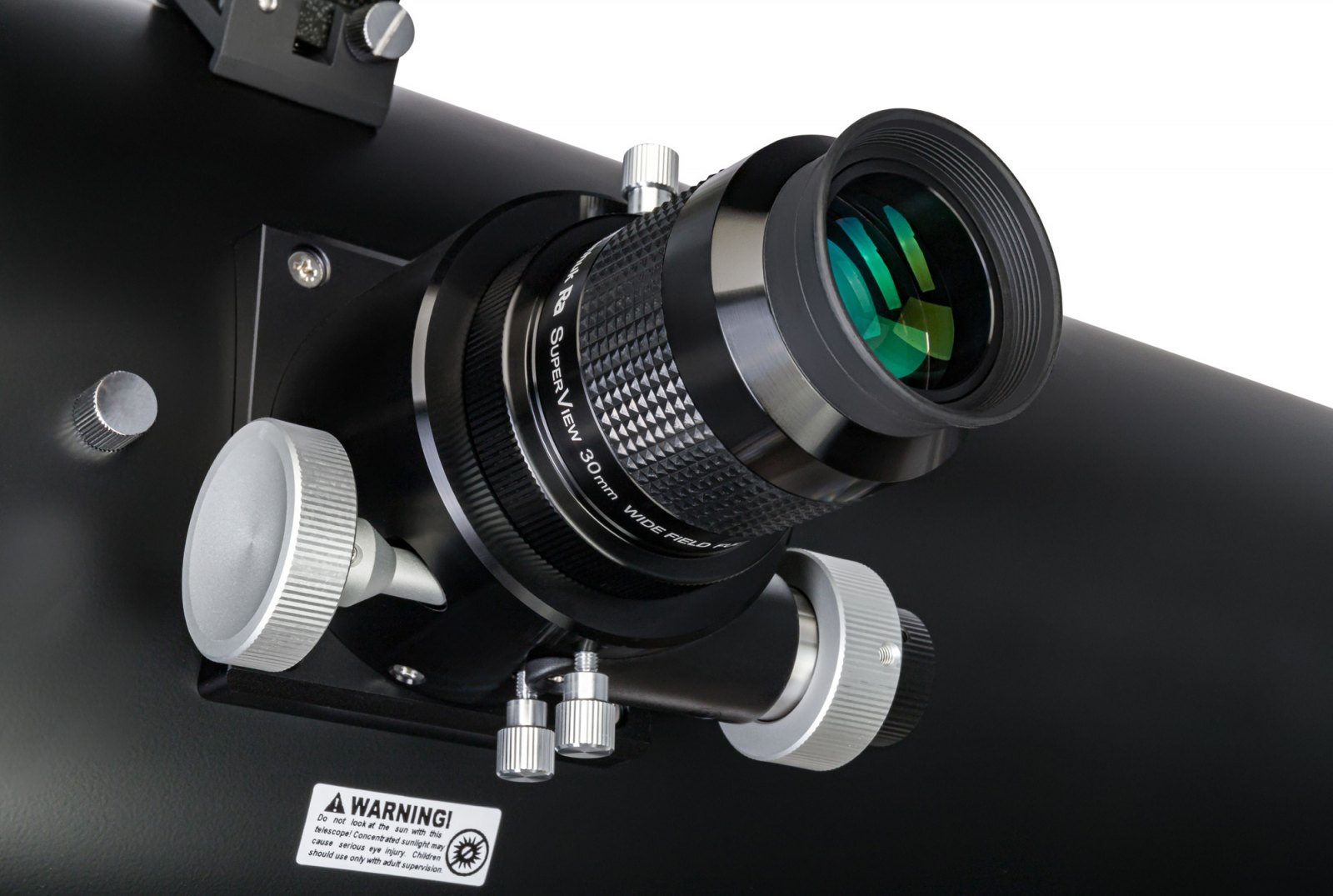 Sada dalekohledu obsahuje základní doplňky, které umožňují okamžité zahájení pozorování. 9 mm a 30 mm okuláry jsou ideální pro první představení hlubokého vesmíru. Optický hledáček 8x50 mm se používá k vyhledávání objektů.