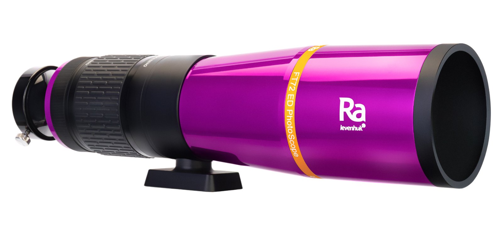 Fotodalekohled Levenhuk Ra FT72 ED je apochromatický refraktor se dvěma čočkami a optikou s velmi nízkou disperzí. Apertura 72 mm. Ohnisková vzdálenost 432 mm. Maximální zvětšení 144x.