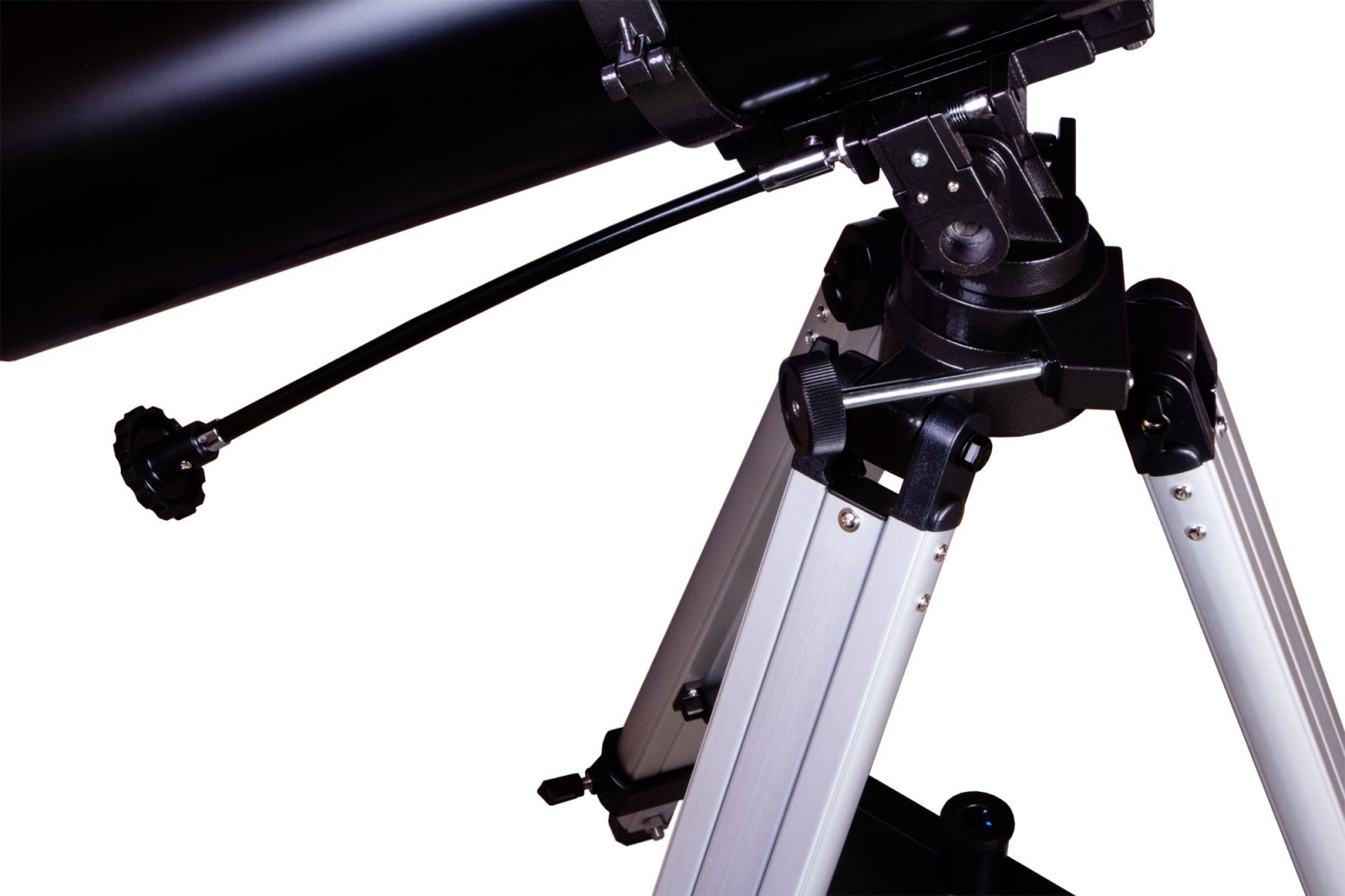 Tento teleskop se dodává včetně azimutální montáže. Pro nasměrování optického tubusu na požadovaný objekt stačí jedno otočení. Díky jednoduché manipulaci je model Levenhuk Skyline BASE 110S skvělou volbou pro zákazníky, kteří podnikají první krůčky v objevování vesmíru a hledají teleskop se snadnou obsluhou. Montáž je připevněna k hliníkovému stativu;nohy stativu mají nastavitelnou výšku. K dispozici je také odkládací přihrádka na příslušenství.