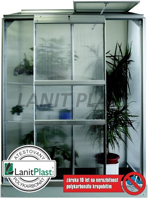 Polykarbonát - velmi kvalitní dvoustěnný polykarbonát s UV filtrem (nekřehne, nežloutne). Z důvodu zajištění maximální kvality prosklení tohoto modelu skleníku je prosklení vyrobeno firmou LANIT PLAST, s.r.o. z komůrkového polykarbonátu Marlon (výrobce Brett Martin - Velká Británie) nebo z polykarbonátu Sunlite (výrobce Palram Europe - Velká Británie/Německo). Společnost LANIT PLAST, s.r.o. je od roku 1999 jedním z největších oficiálních dovozců polykarbonátu do ČR (jako regionální partner jejich výrobců) a disponuje proto vlastními technickými zkušebními protokoly z českých státem akreditovaných zkušeben. Jedná se tak o jedny z mála skleníků na českém trhu, které jsou osazené kvalitním polykarbonátem s doložitelnou českou certifikací.