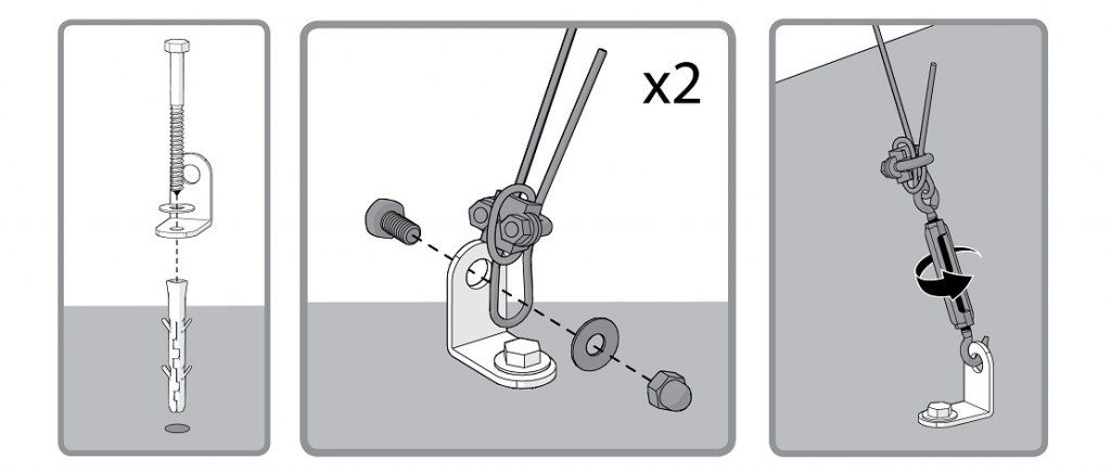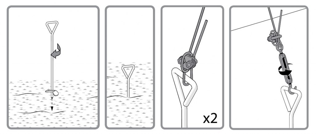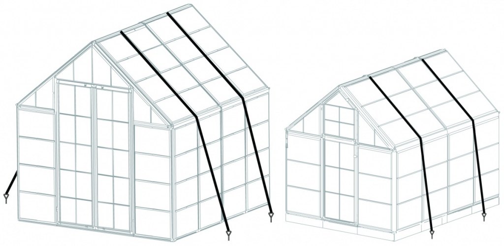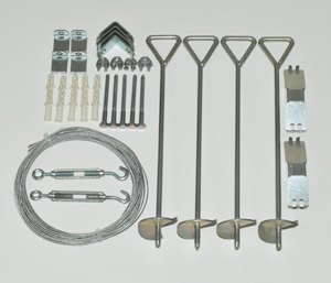 Kotvící set obsahuje vše pro ukotvení vašeho skleníku k pevným základům nebo přímo do půdy. Ukotvit skleník můžete samozřejmě všemi obvyklými způsoby. Základna skleníků Palram to bez problémů umožňuje. Originální kotvící set Palram je možnost, jak skleník ukotvit rychle a bezpečně a jak ho spolehlivě ochránit i před silným větrem. Dá se rovněž použít v kombinaci s jiným způsobem ukotvení (např. přišroubování základny na betonové patky) jako dodatečná ochrana při očekávání vichřice apod. Výhodou je, že ukotvení skleníku zvládne každý během několika minut. Pro ukotvení k pevné podložce slouží kotevní "V" profily se šrouby a hmoždinkami, pro ukotvení do půdy slouží kolíky se šroubovicí.