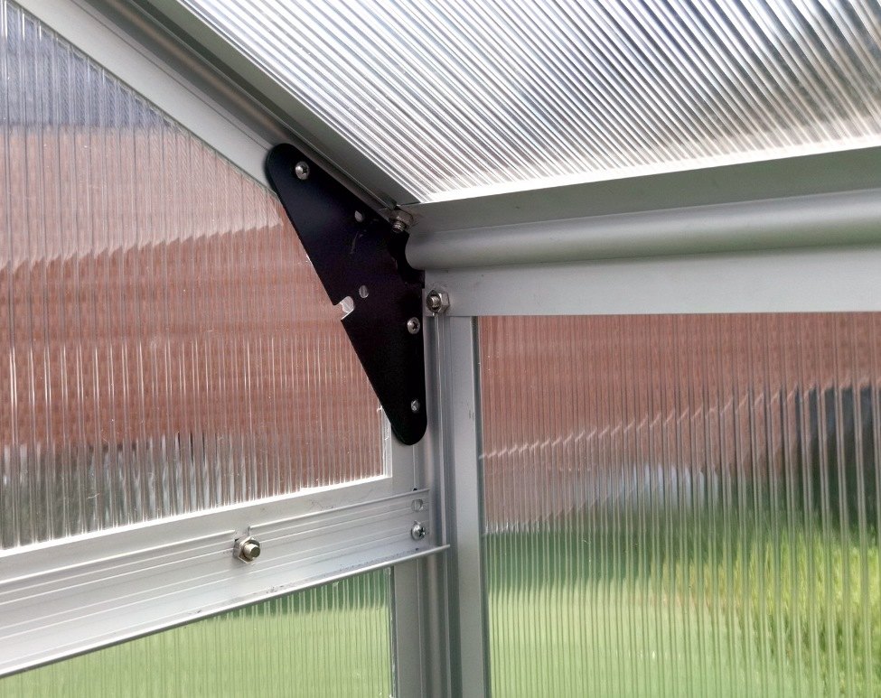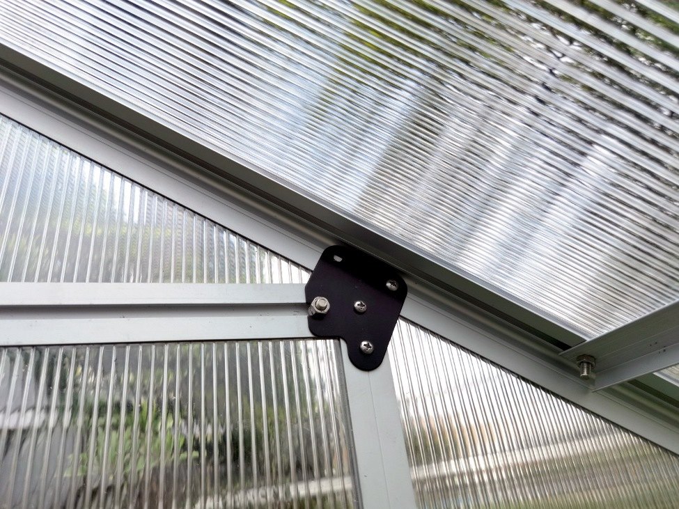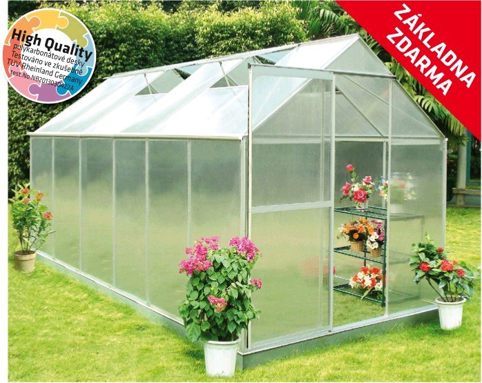 Základem každého kvalitního polykarbonátového skleníku je pevná konstrukce z eloxovaných hliníkových profilů o síle až 1,5 mm a kvalitní polykarbonát. Naše skleníky VeGA a Komfort jsou osazeny kvalitním tepelně-izolačním dvoustěnným komůrkovým polykarbonátem s UV slunečním filtrem o síle desek 4 a 6 mm. Kvalitu polykarbonátových desek použitých na skleníky potvrzuje certifikát vystaven německou certifikovanou zkušebnou TÜV Rheinland. Dalším podstatným stavebním bodem každého skleníku je konstrukční spojení polykarbonátových desek s hliníkovou nosnou konstrukcí. Skleníky VeGA a Komfort mají speciální drážkovou konstrukci, jedná se o moderní dokonalé řešení, které zásadně zvýšilo celkovou pevnost a stabilitu celého skleníku. Oproti zastaralému drátkovému systému, který se už téměř moc nepoužívá, se zároveň zvýšila i odolnost skleníku vůči nárazům větru a sněhové zátěži. Ke skleníkům je zdarma dodávána masivní pozinkovaná základna sloužící pro bezproblémové používání skleníku i bez pevného základu. Velice nadstandardní výška skleníků se základnou 191-250 cm dle modelů je koncipována pro běžné evropské uživatele, kteří mají rádi dostatečný prostor a užitkový komfort. Dále jsme s výrobcem vyjednali úpravy pro navýšení počtu oken na sklenících a zároveň