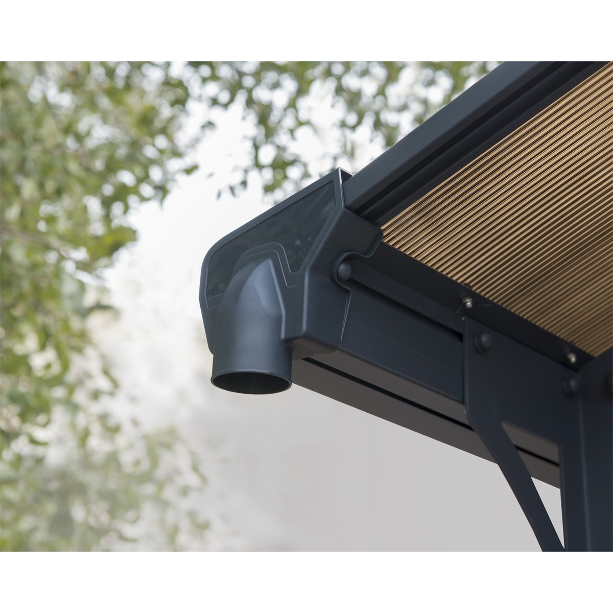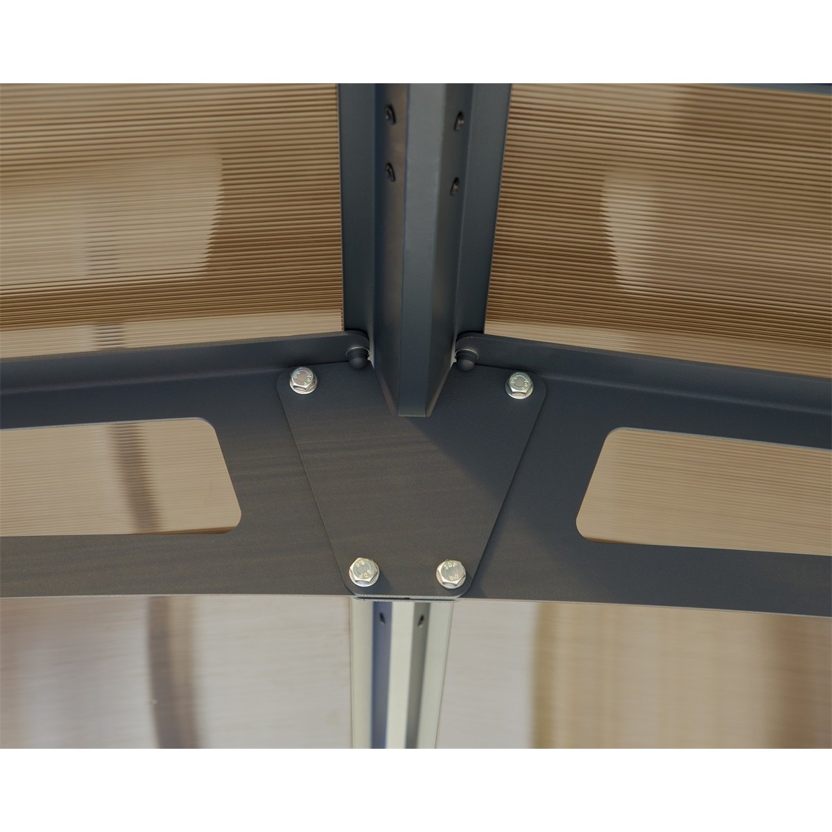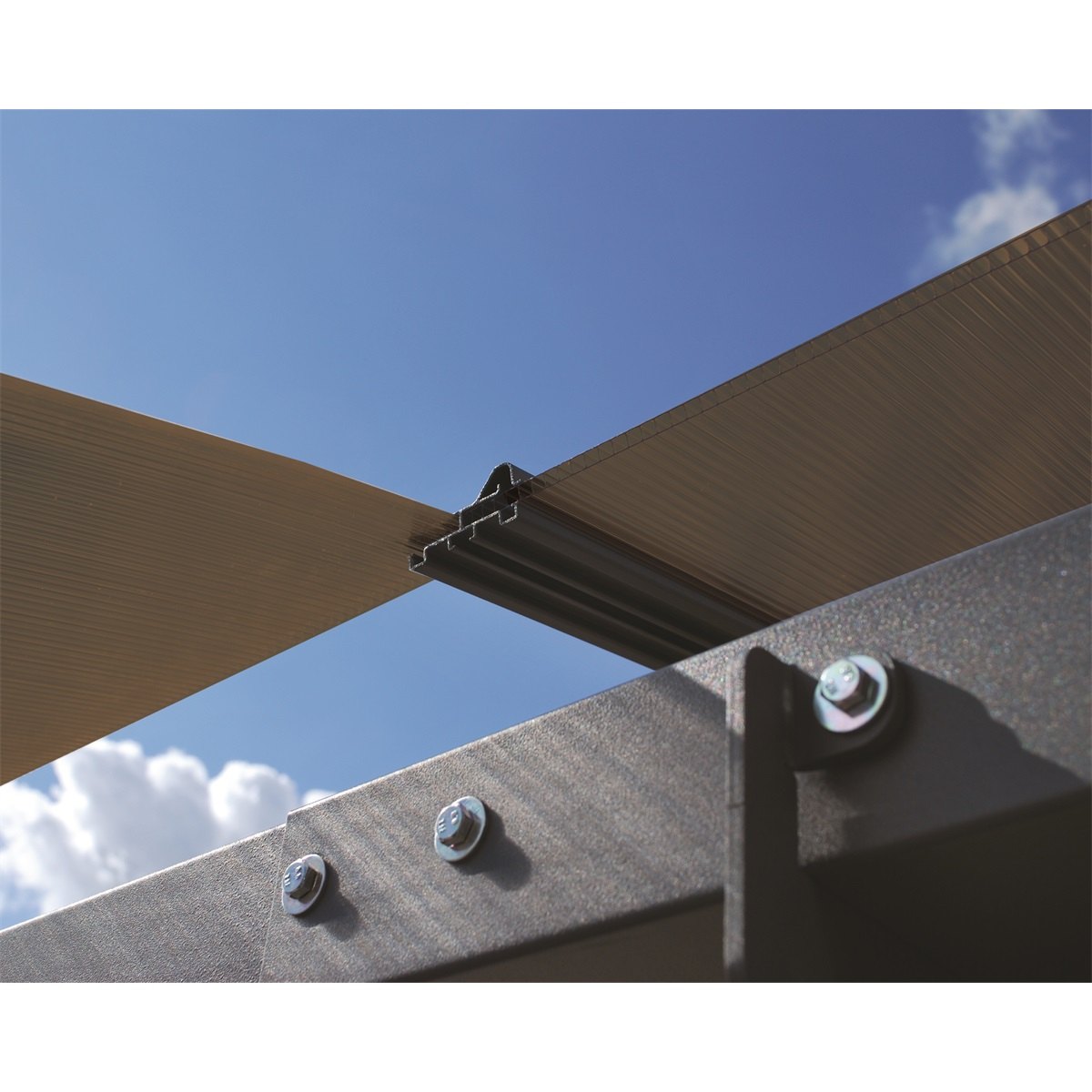 80 x 80 mm a silného dvoukomůrkového polykarbonátu se 100% UV ochranou. Elegantní design, bohatě dimenzovaná šířka pro snadný přístup. Střešní panely odolné vůči vysokému zatížení i kroupám, polykarbonát v bronzové barvě. Unikátní systém nasunutí střešních panelů bez dalšího spojovacího materiálu – dokonalá těsnost, jednoduchá montáž a netečnost k teplotní roztažnosti panelů. Hliníkový rám s galvanicky ošetřenými kovovými prvky je ošetřen antracitovou práškovou barvou a je vysoce odolný vůči rezavění. Možno vybavit LED osvětlením. Díky přehlednému manuálu a jedinečné konstrukci stavba nevyžaduje více než 2 osoby.