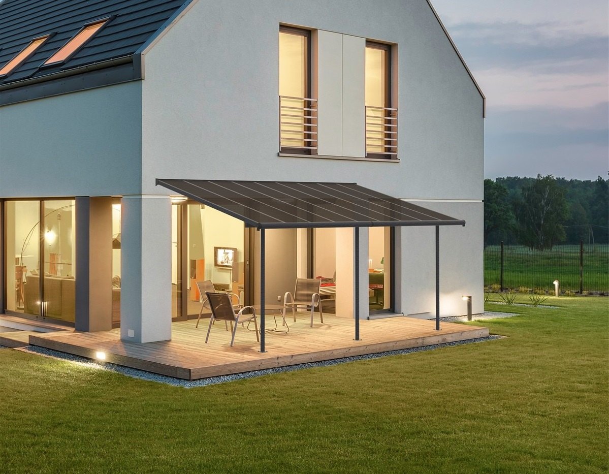 Palram Capri 5400 antracit 3 x 5,46 hliníková pergola má konstrukci z hliníkových profilů a silného sendvičového polykarbonátu se 100% UV ochranou. Konstrukce je vysoce odolná vůči rezavění, plísním či mechům.