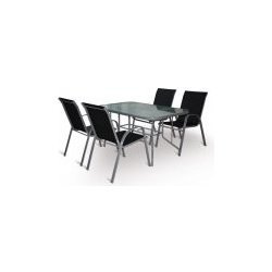 • Stolová sestava VeGAS PATRICIA 6 se skládá ze 4 pohodlných stohovatelných křesel a stolu z hliníkovo-ocelových profilů povrchově dokončené komaxitovou úpravou.