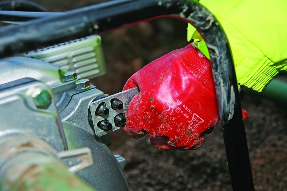 Model malého motorového kalového čerpadla. Vysoce odolné kalové čerpadlo pohání profesionální motor řady GX s lehkým startem a to vše je zavěšeno v pevném ocelovém rámu. Na šroubení lze připojit šroubovací hasičskou půlspojku typu "C", na kterou snadno napojíte hasičskou hadici.