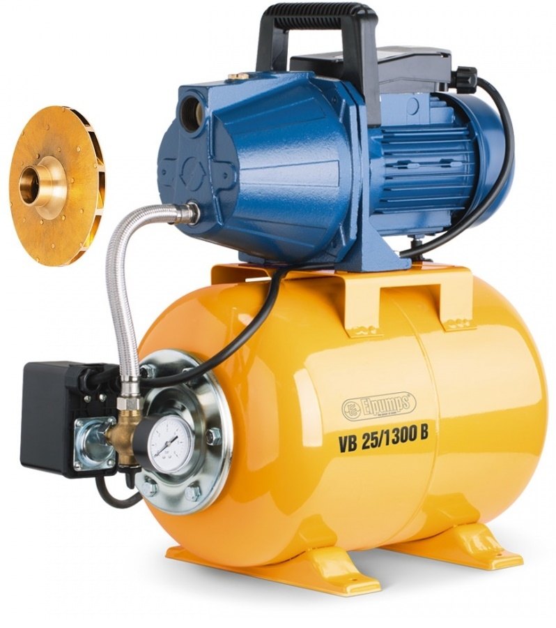 Domácí vodárny ELPUMPS splňují veškeré potřeby zákazníka na zásobování domu nebo zahrady pitnou či užitkovou vodou. Základem bezproblémového chodu a dlouhé životnosti jsou tiché motory o výkonu minimálně 900 W. Pouze takto silné motory mají dostatečnou výkonovou rezervu pro to, aby u nich nikdy nenastalo přetížení či přehřátí, které by mohlo způsobit zničení motoru. Vnitřní i vnější části jsou vyrobeny z antikorozních materiálů. Zákazník může podle potřeb volit mezi tlakovou nádobou o objemu 25 nebo 50 litrů. Kovové opěrné nohy zajišťují dobrou stabilitu stroje. Vodárny je možno dovybavit účinným předfiltrem 1l a ochrannou proti běhu naprázdno. Model VBP je osazen čerpadlem s implementovaným předfiltrem o objemu 2 l.
