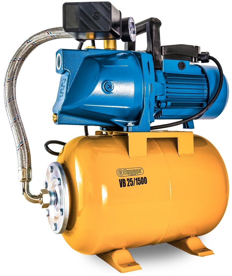 Zákazník může podle potřeb volit mezi tlakovou nádobou o objemu 25 nebo 50 litrů. Kovové opěrné nohy zajišťují dobrou stabilitu stroje. Vodárny je možno dovybavit účinným předfiltrem 1l. Model VBP je osazen čerpadlem s implementovaným předfiltrem o objemu 2 l.