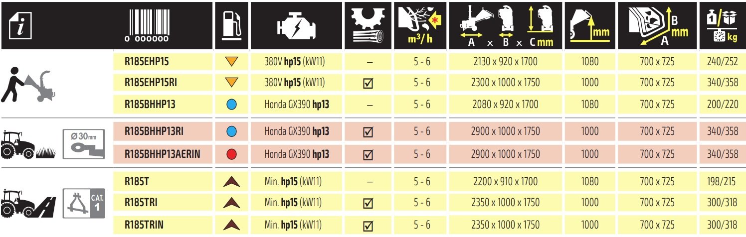Drtiče značky Negri bio jsou vyráběny s motory elektrickými, benzínovými, naftovými a traktorovými pohony PTO.