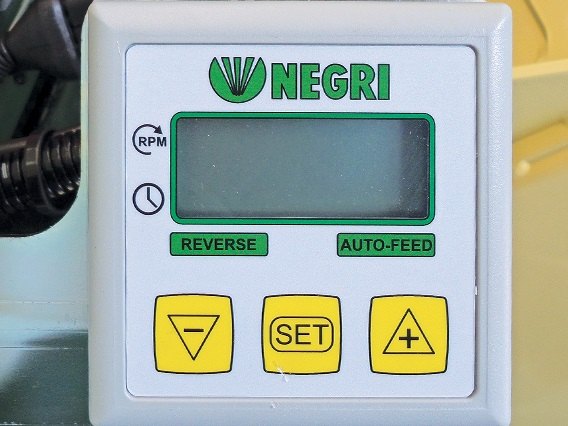 Důležitým bezpečnostním prvkem stroje je pákový systém, který automaticky zastaví podávací válce v případě zachycení obsluhy nebo vniknutí nežádoucího předmětu do násypky. Téměř všechny drtiče jsou osazeny hydraulickými podávacími válci s proměnnou rychlostí podávání a možností zpětného chodu. Vyváženým těžištěm drtiče je zabezpečena dokonalá stabilita při práci i manipulaci se strojem. Dalším podstatným prvkem drtičů Negri bio je výška výhozového komínku, kterou lze prodloužit. Snadný a rychlý přístup k drtícímu ústrojí zajišťuje bezproblémové čištění a údržbu stroje. Ocelové díly jsou opatřeny kvalitní práškovou povrchovou úpravou nebo galvanicky pozinkované.