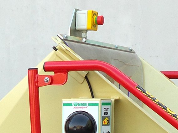 Důležitým bezpečnostním prvkem stroje je pákový systém, který automaticky zastaví podávací válce v případě zachycení obsluhy nebo vniknutí nežádoucího předmětu do násypky. Téměř všechny drtiče jsou osazeny hydraulickými podávacími válci s proměnnou rychlostí podávání a možností zpětného chodu. Vyváženým těžištěm drtiče je zabezpečena dokonalá stabilita při práci i manipulaci se strojem. Dalším podstatným prvkem drtičů Negri bio je výška výhozového komínku, kterou lze prodloužit. Snadný a rychlý přístup k drtícímu ústrojí zajišťuje bezproblémové čištění a údržbu stroje. Ocelové díly jsou opatřeny kvalitní práškovou povrchovou úpravou nebo galvanicky pozinkované.