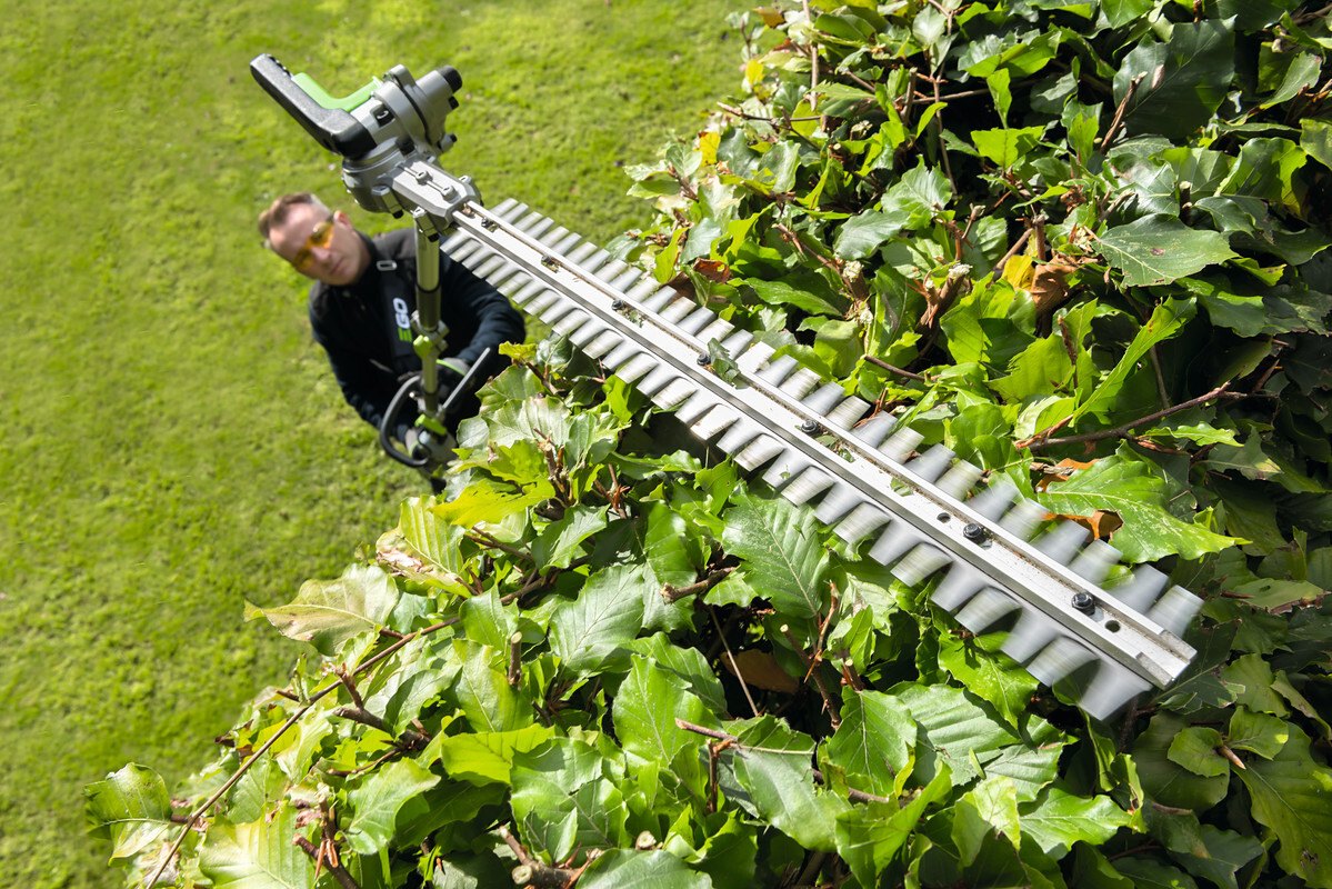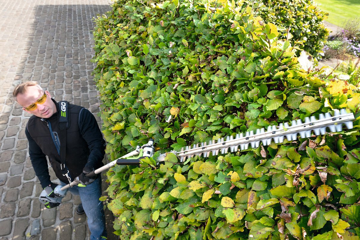 Pro kvalitní úpravu a precizní tvarování vysokých živých plotů a okrasných dřevin v okrasných zahradách, zámeckých parcích ale i doma na zahradě je důležitý čistý a přesný střih, kterým rostlinu nepoškodíte, nezraníte a rostlina tak po zastřižení zůstává zdravá a svěží. To lze provádět v bezpečí stabilního postoje na pevné zemi. Proto je zde k dispozici nástavec s nůžkami na živý plot s dlouhým nástavcem a přesnou, 51cm dlouhou oboustrannou lištou, přesně broušenou pomocí diamantového nástroje. Pohodlné manipulaci při práci přispívá rovněž otočný kloub lišty. Úhel sklonu lišty do 12 různých poloh je velmi důležitý, aby se přizpůsobil příslušné práci na konkrétním porostu a usnadnil také uskladnění v malých prostorách. Mimořádně ostré střižné zuby mají rozteč 26mm jsou schopny ustřihnout dřevinu do průměru až 15 mm. Celková délka nástavce je 160cm, ve složeném stavu 99cm. Pohonná jednotka v kombinaci s tímto nástavcem je plnohodnotnými nůžkami na živé ploty s mimořádně velkým dosahem.