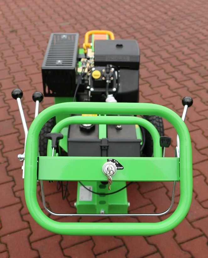 Pařezová fréza Laski F 460/18 s benzínovým motorem KOHLER CH 620 o výkonu 14,2 kW (19 HP). Šířka 750 mm umožňuje průjezd frézy i stísněným prostorem. Průměr fréz. kotouče 47 cm. Hmotnost 205 kg.