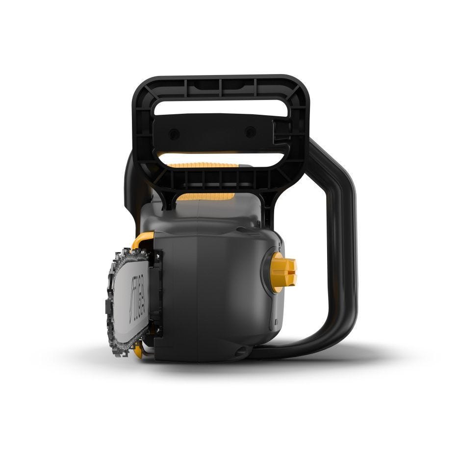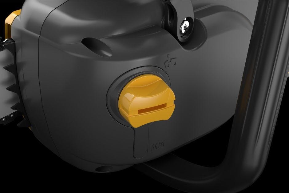 Napínání řetězu je snadné díky integrované matici na boku krytu řetězu. Pomocí volicích tlačítek můžete přepínat rychlost řetězu: zvolte 16 m/s, chcete-li šetřit energii akumulátoru, nebo 20 m/s pro rychlejší řezný výkon bez odporu. A chcete-li znát základní údaje, jako je rychlost, úroveň nabití akumulátoru a vypnutí/zapnutí brzdy, rychlým pohledem na LED diody na ovládacím panelu ihned zjistíte, co potřebujete vědět – dokonce i na silném slunečním světle. Hladinu oleje pro mazání řetězu můžete zkontrolovat, pouhým pohledem na průhledné okénko nádrže.