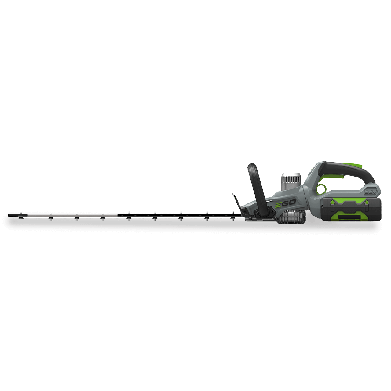 Pro kvalitní, přesnou a rovnou úpravu živých plotů a okrasných dřevin v okrasných zahradách, zámeckých parcích ale i doma na zahradě je důležitý čistý a přesný střih, kterým rostlinu nepoškodíte, nezraníte a rostlina tak po zastřižení zůstává zdravá a svěží. Proto jsou tyto akumulátorové nůžky na živý plot vybaveny přesnou, 65cm dlouhou oboustrannou lištou, přesně broušenou pomocí diamantového nástroje. Pohodlné manipulaci při práci přispívá rovněž otočná ovládací rukojeť vyrobená z příjemného materiálu a ergonomického tvaru, kterou je možné po uvolnění pojistky otočit o 90° vpravo či vlevo. Mimořádně ostré střižné zuby mají rozteč 33mm a hloubku 20mm a jsou schopny ustřihnout dřevinu do průměru až 20 mm. Ochranný doraz špičky lišty zabraňuje poškození při případném kontaktu lišty se zdí či jinou pevnou překážkou. Pro lehkou a přesnou práci a manipulaci je celý stroj dokonale ergonomicky vyvážen. Díky dvěma rychlostem a dlouhé liště v celkové délce 65cm snadno docílíte skutečně rovného a rovnoměrného střihu doslova jako podle pravítka. Jak otočná rukojeť, tak i madlo držení je opatřeno bezpečnostní pojistkou, která zaručuje v případě uvolnění okamžité vypnutí stroje. Na rukojeti je umístěn vypínač, který zajišťuje při stisknutí plynulé a postupné spuštění stroje a přepínač volby rychlosti. Na pohon nůžek na živý plot lze použít jakoukoliv baterii ze sortimentu EGO a např. baterie 2,5Ah vám umožní pracovat nepřetržitě až 33 minut a s baterií 5,0Ah až 72 minut. Naše lithiové baterie EGO Power+ 56V Arc Vám poskytnou dostatek energie pro pohon výkonného a účinného bezuhlíkového motoru s vysokou odolností proti přetížení a přímým náhonem na pracovní nástroj. Stroj je mimořádně tichý, proto vhodný k použití v oblastech citlivých na hlučnost a kouřivost, jako jsou např. nemocnice, školy, zámecké zahrady nebo centra měst. Žádná napájecí šňůra, žádné provozní náplně, žádný hluk, žádný zápach. Nízká hmotnost, pohodlný úchop a snadná manipulace dělají z tohoto stroje vynikajícího pomocníka pro skutečně profesionální zarovnávání zeleně.