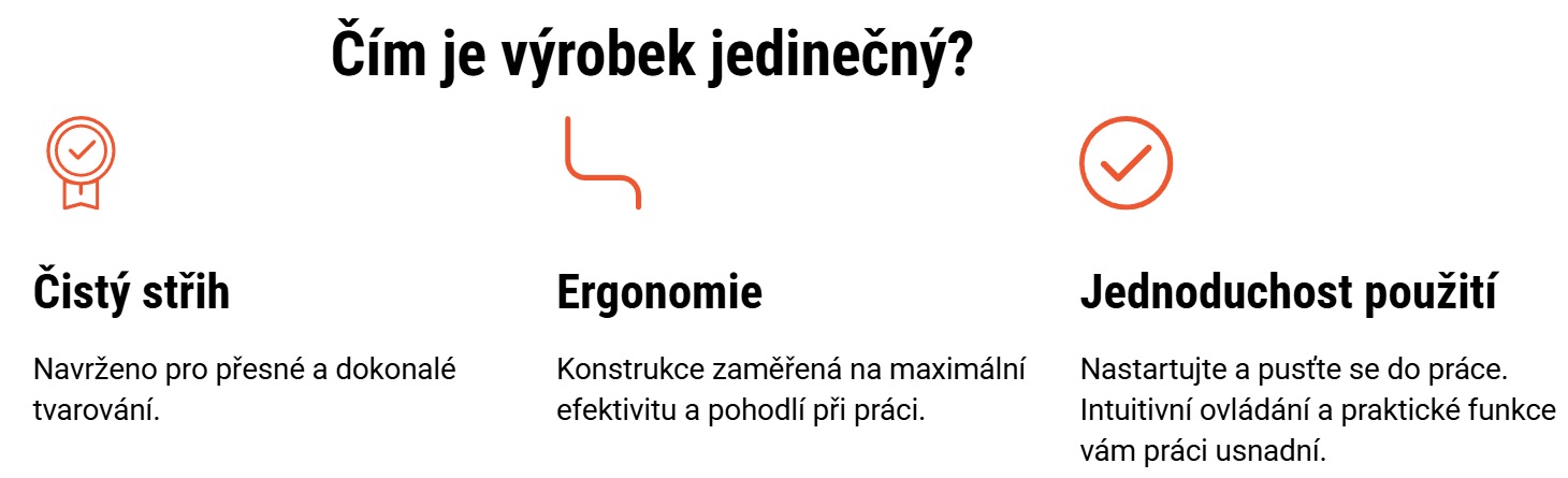 Lehká, ergonomická konstrukce v kombinaci s výkonným motorem o objemu 21,2 cm³ zajišťuje výjimečný výkon bez zbytečné únavy. Výfuk směřující dopředu odvádí spaliny od obsluhy i stříhaného porostu, zatímco nasávání chladicího vzduchu udržuje motor po celou dobu práce v optimální teplotě. Nové zuby střižné lišty o délce 24 mm pracují při zvýšené rychlosti 4670 zdvihů za minutu, což zajišťuje přesné a snadné stříhání.