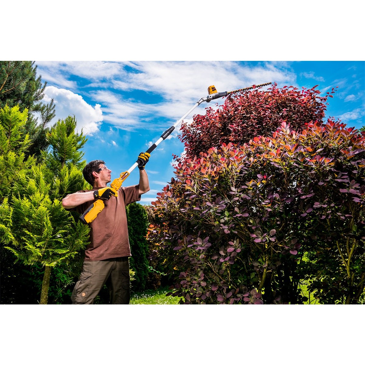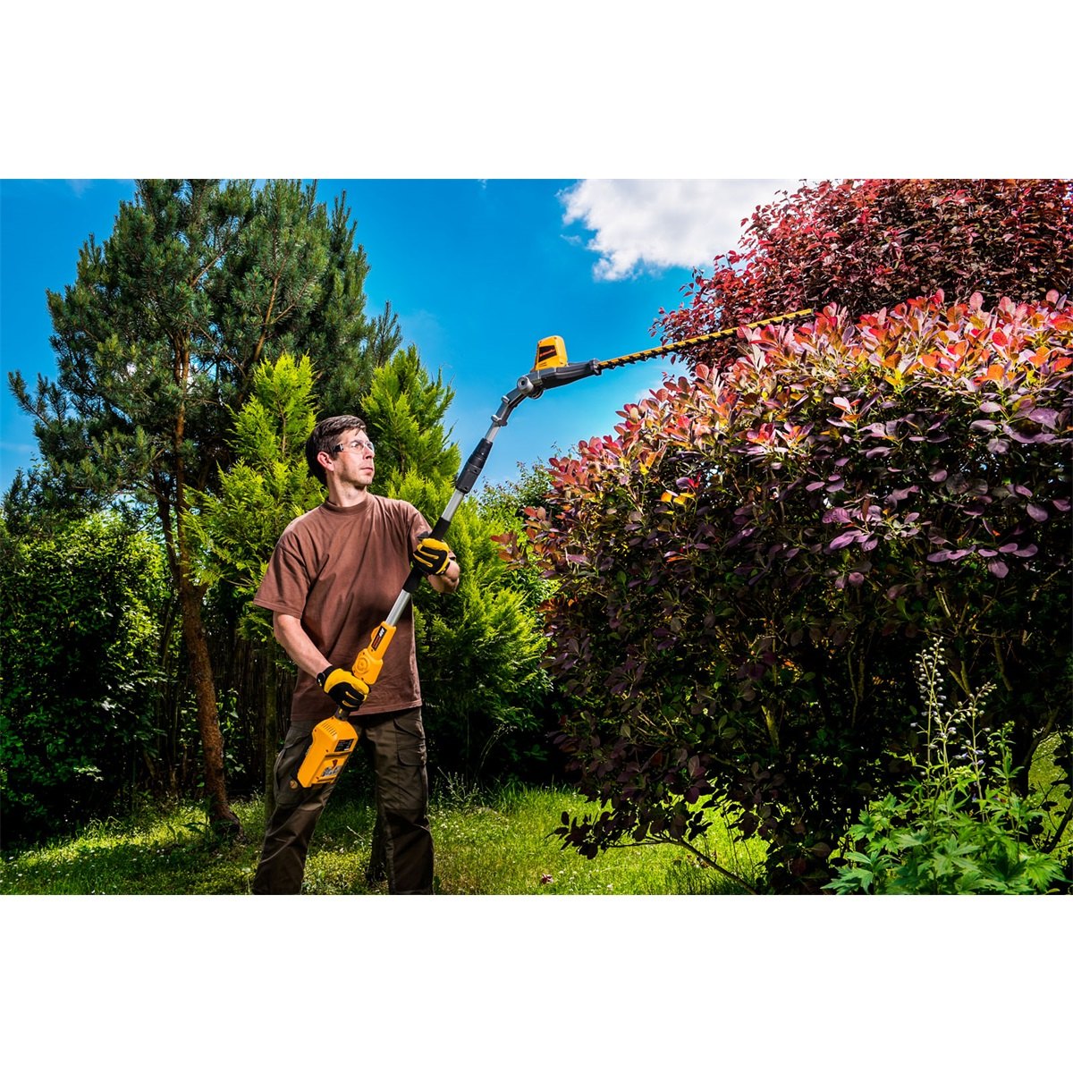 Naklápěcí hlava v rozmezí 125° pro práci v různých polohách. Ergonomická protiskluzová rukojeť s velkým bezpečnostním spínačem pro pohodlnou práci v rukavicích. Výsuvná teleskopická rukojeť umožňuje stříhat i vysoké ploty bez nutnosti použití štaflí. Úchyt na ramenní popruh (popruh je součástí dodávky). Baterie v zadní části stroje pro výborné vyvážení stroje. Možno kombinovat s jakoukoliv baterií a nabíječkou Riwall. 2 roky plná záruka na baterii -v případě problému bude automaticky vyměněna za novou.