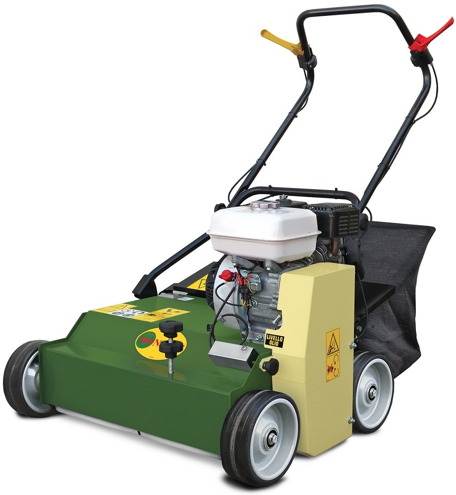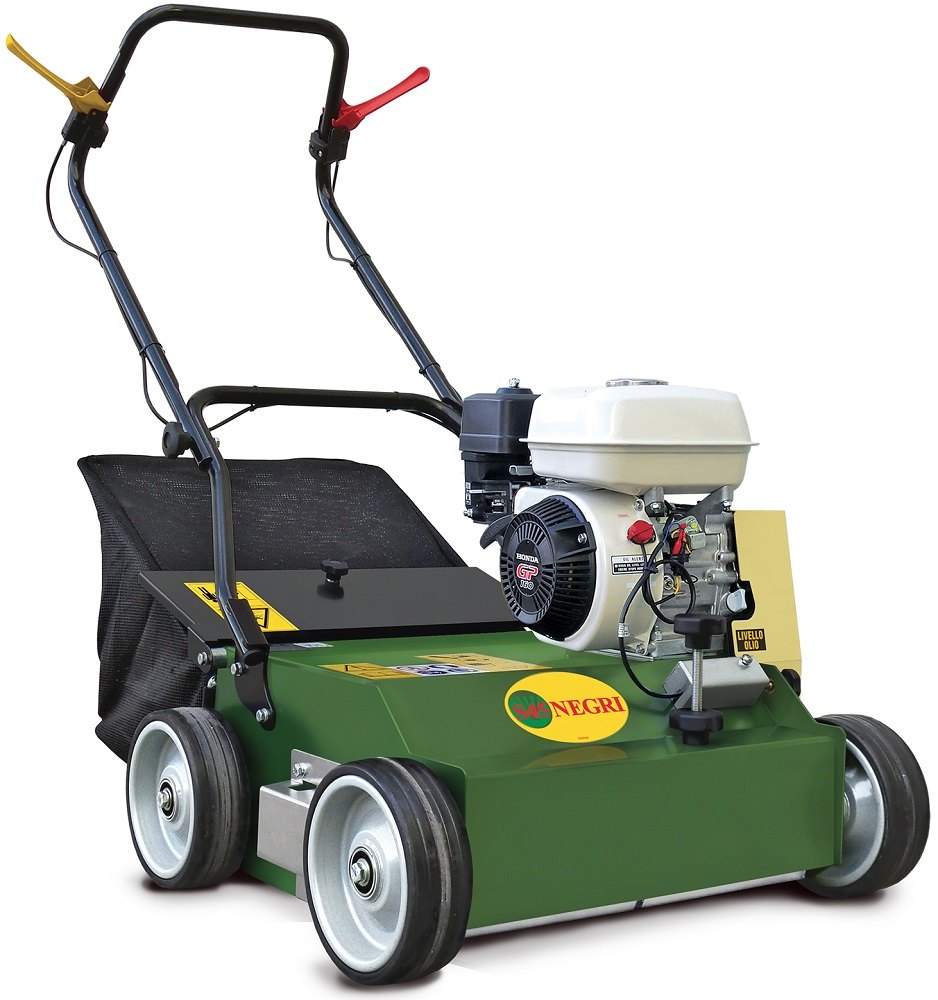 Profesionální benzínový travní provzdušňovač Negri bio S45HGP55FI, pevné nože. S motorem Honda GP160 o výkonu 5,5 HP. Šířka záběru 45 cm. Hmotnost 75 kg.