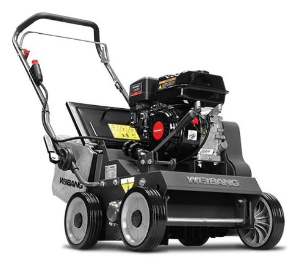 Motorový provzdušňovač trávníků WEIBANG 384 RC s motorem Loncin OHV 163 ccm, 5Hp, šířka pracovního záběru je 380 mm, plynulé centrální nastavením výšky, robustní šasi z vysokojakostní oceli, sběrný koš o objemu 40l. Hřídel je osazena 22 profesionálními flexi noži - tato konstrukce eliminuje možné poškození nožů nebo celé hřídele. Hřídel je uložena v masivních ložiscích. Hmotnost provzdušňovače je 46 kg.