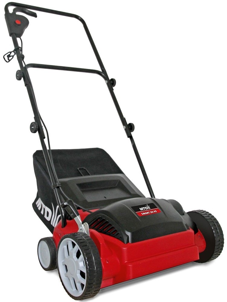Travní provzdušňovač MTD Smart 30 VE s elektrickým motorem 230V MTD Smart 30 VE o výkonu 1200 W se záběrem 30 cm. Objem koše 35 l. Hmotnost 11 kg.