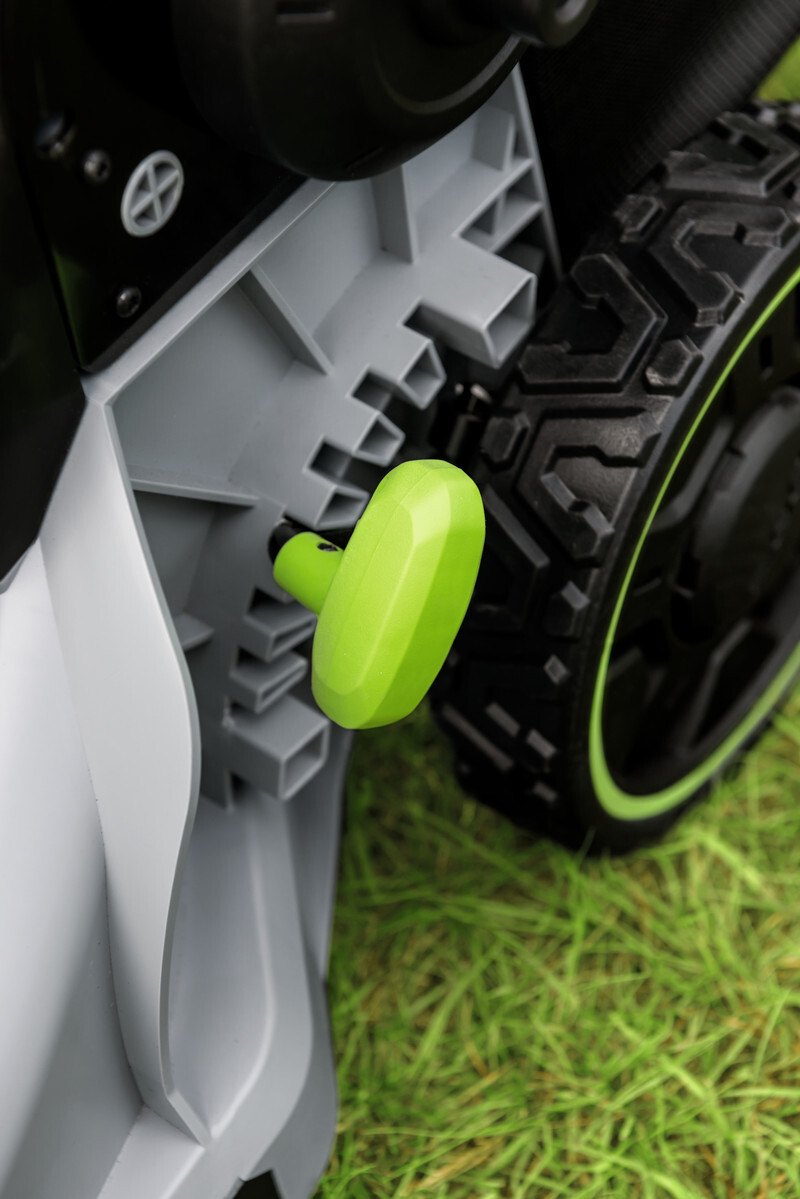 Model EGO LM 1700E - záběr sečení 42cm, bez vlastního pojezdu, objem sběrného koše 55L, teleskopická a výškově nastavitelná komfortní rukojeť.