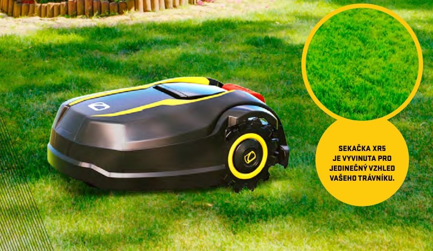 Model XR5 byl navržen tak, aby sekal s maximální možnou přesností, na rovném i svažitém terénu, v ideálních i obtížnějších podmínkách, za každého počasí, ve dne i v noci, tiše a bez emisí výfukových plynů. Byl navržen tak, aby udržoval váš trávník nejenom svůdný na pohled, ale aby byl trávník i zdravý a silný. A vy se mezi tím můžete věnovat všem aktivitám, které máte na zahradě rádi