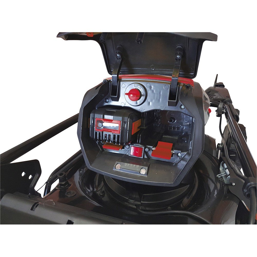 Tento model sekačky disponuje dvouslotovým uložením baterií. Jeden slot aktivní a druhý úložný pro možnost okamžité výměny baterie a pokračování v sečení.