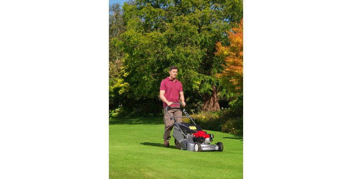 Extrémně odolná zahradní motorová sekačka se zadním pojezdovým válcem, s Roto-stopem®, na podvozku odlitém z hliníkové slitiny se záběrem sečení 53 cm.