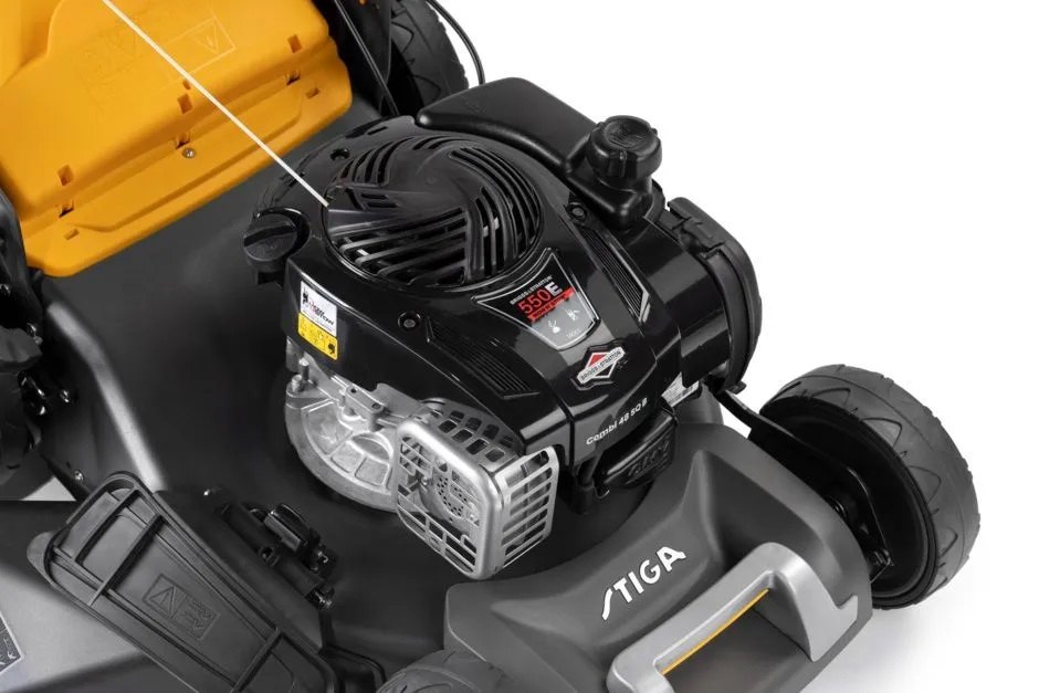 Sekačka na trávu STIGA Combi 48 SQ s pojezdem má záběr sečení 46 cm a je poháněna spolehlivým benzínovým motorem Loncin ST 140 o objemu 140 cm3 s čistým výkonem 2,12 kW při 2 900 ot/min. Má ocelové šasi s centrálním nastavením výšky střihu pomocí páčky umožňujícím snadné nastavení do 6 poloh od 22 do 80 mm. Model Combi 48 SQ umožňuje volbu ze 4 různých funkcí sečení: zadní výhoz, boční výhoz, sběr nebo mulčování, při kterém jsou kousky trávy najemno nasekány a přemístěny na zem, kde působí jako přírodní hnojivo. Nastavitelná ergonomická rukojeť usnadňuje používání a praktické západky umožňují složení pro uložení ve vertikální poloze, které ušetří maximum prostoru při uskladnění . Velká zadní 280 mm kola jsou ideální pro pohyb po nerovném terénu.