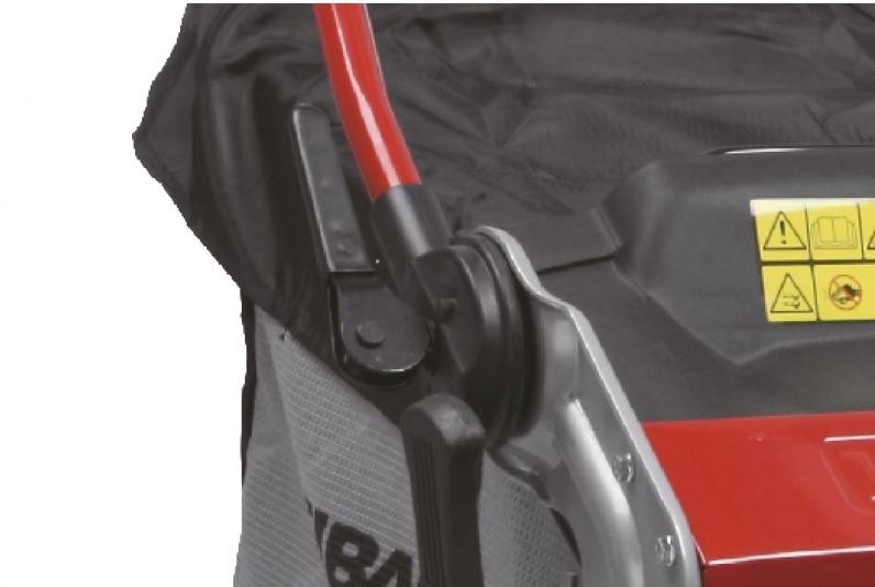 Pogumovaná sendvičová kola jsou uložena v oboustranných kuličkových ložiscích, centrální nastavení výšky sečení je u této značky samozřejmostí. Velkým nadstandardem u této sekačky je použita speciální třecí spojka na noži sekačky pod unášečem, která je schopna prokluzu nože při naražení do pevné překážky. Tato funkce může eliminovat škody na sekačce způsobené nárazem nože do překážky. Ergonomická rukojeť s ovládacími prvky otáček motoru a speciální povlak na obvodu sběracího koše, který stimuluje proud vzduchu, aby se neprášilo na obsluhu.