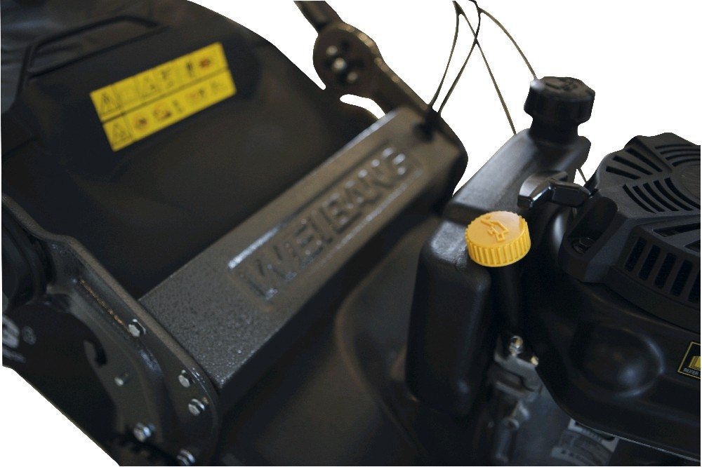 Velkým nadstandardem u této sekačky je použita speciální profi BBC spojka nože, která je schopna vypínat i zapínat žací nůž i při trvalém běhu motoru. Tato funkce může eliminovat škody na sekačce způsobené nárazem nože do překážky. Ergonomická rukojeť s ovládacími prvky otáček motoru a speciální povlak na obvodu sběracího koše, který stimuluje proud vzduchu, aby se neprášilo na obsluhu.