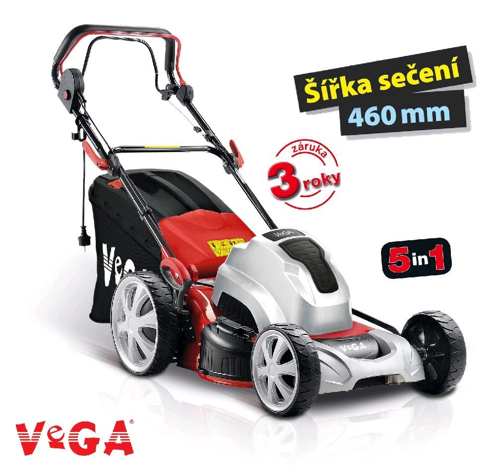 Díky užití elektrického pohonu je ovládání sekačky opravdu snadné. Nutnosti napájecího kabelu je podstatně vyvážena snadným spouštěním, obsluhou a v porovnání se spalovacími motory i mnohem snadnější údržbou, což mnohanásobně snižuje provozní náklady. Velká zadní pojezdová kola i přední kola jsou uložena v oboustraných kuličkových ložiscích, centrální nastavení výšky sečení je u značky VeGA také samozřejmostí, jako ergonomické měkčené madlo. Objemný sběrný koš o kapacitě 60 litrů má ukazatel naplnění. Na sekačky VeGA je poskytována prodloužená záruka 3 roky.