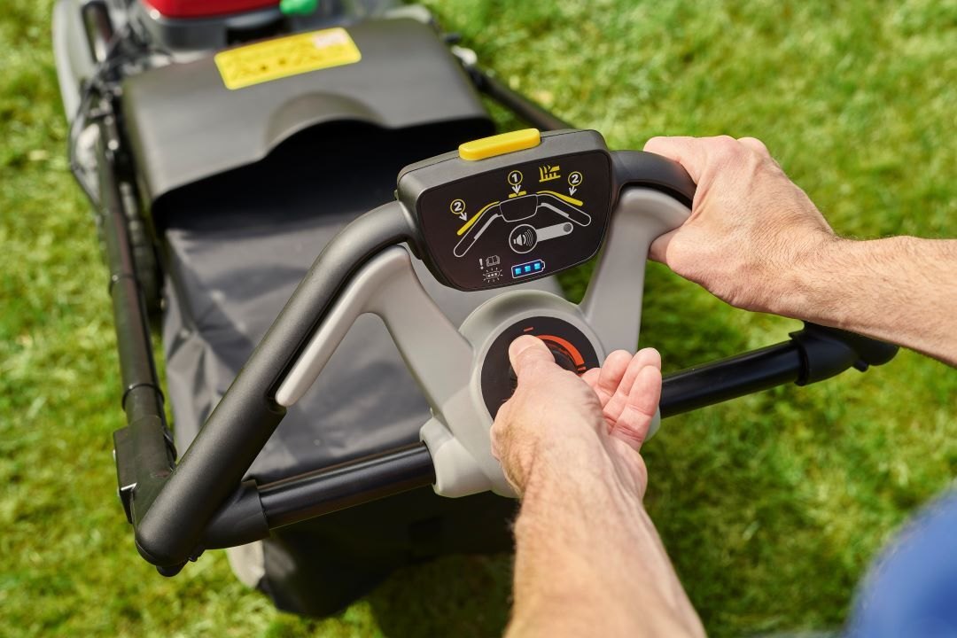 Možnost plynulého nastavení optimální rychlosti jízdy sekačky výrazně snižuje námahu při práci. Rychlost jízdy přesně odpovídá rychlosti chůze uživatale nebo přizpůsobení se povaze povaze terénu, kvalitě trávníku, výšce střihu apod. Na příliš členitých zahradách máte možnost plynule zpomalit při průjezdu kolem překážek, stromů a jiných předmětů i zafixovat zvolenou rychlost. Tuto rychlost si systém SELECT Drive® zachovává i po vypnutí a opětovném zapnutí pojezdu. Znatelně se tak usnadňuje manipulace se sekačkou a zvyšuje se tak komfort použití. A to vše bez nutnosti upravovat optimální pracovní otáčky motoru, které jsou zárukou dokonalého sekání s sběru posekané trávy. Bezpečnost při práci a pohodlnost ovládání zajišťuje zcela intuitivní ovládání pomocí ergonomicky tavrovaného madla.
